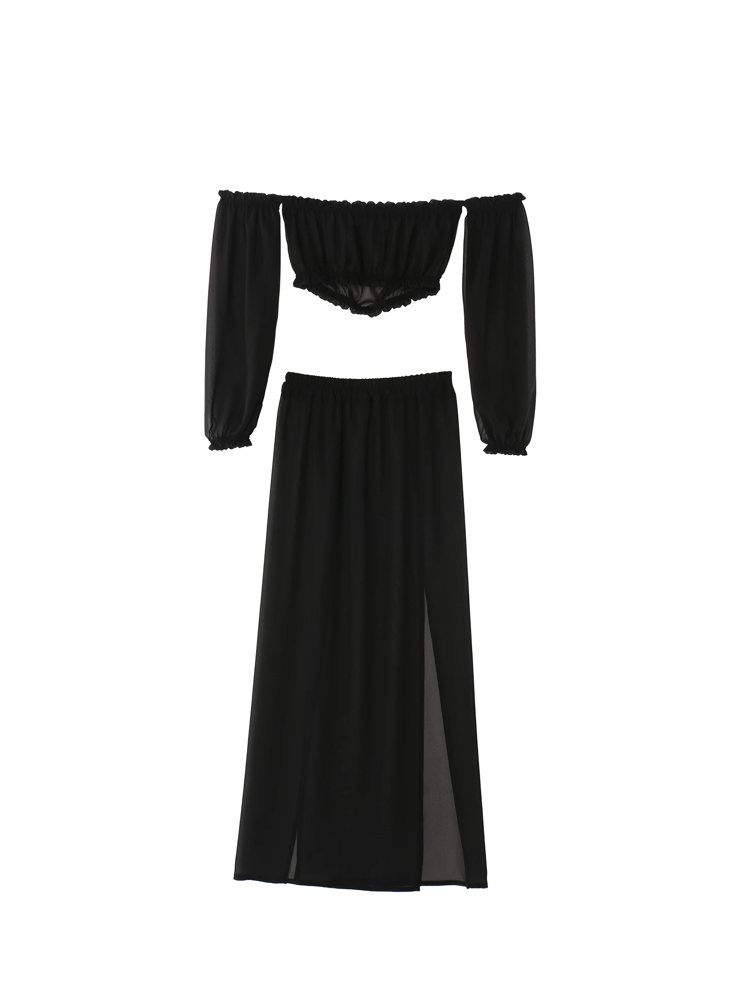 Женский костюм из двух предметов, Топ с длинным рукавом и открытыми плечами + накидка на юбку для пляжа