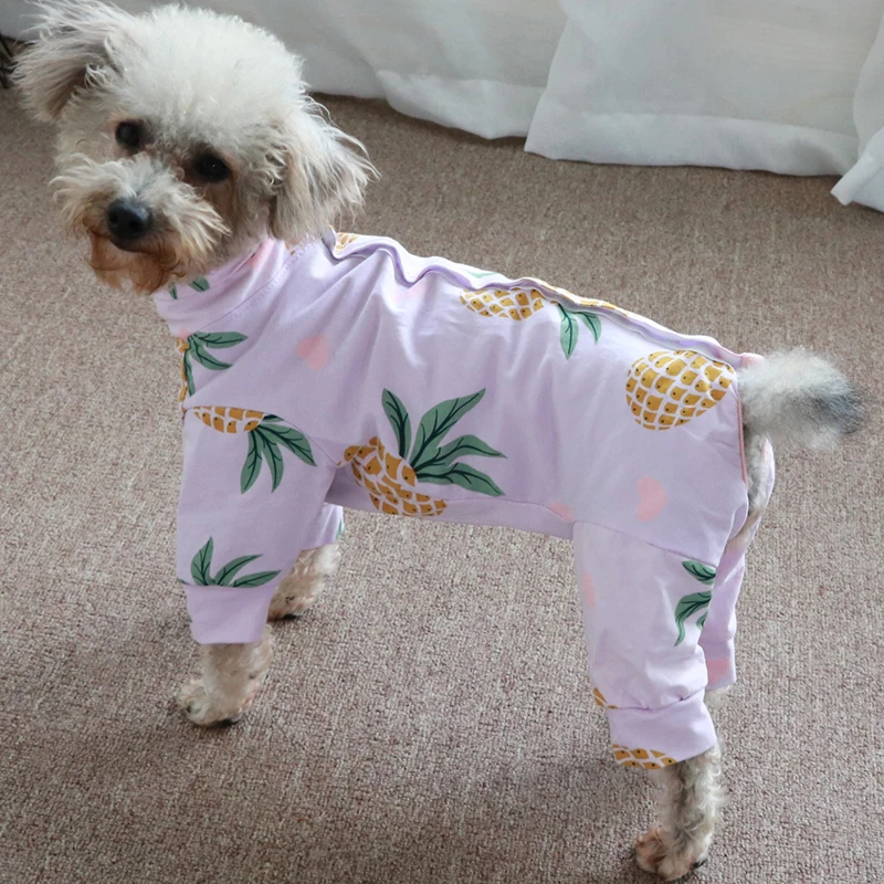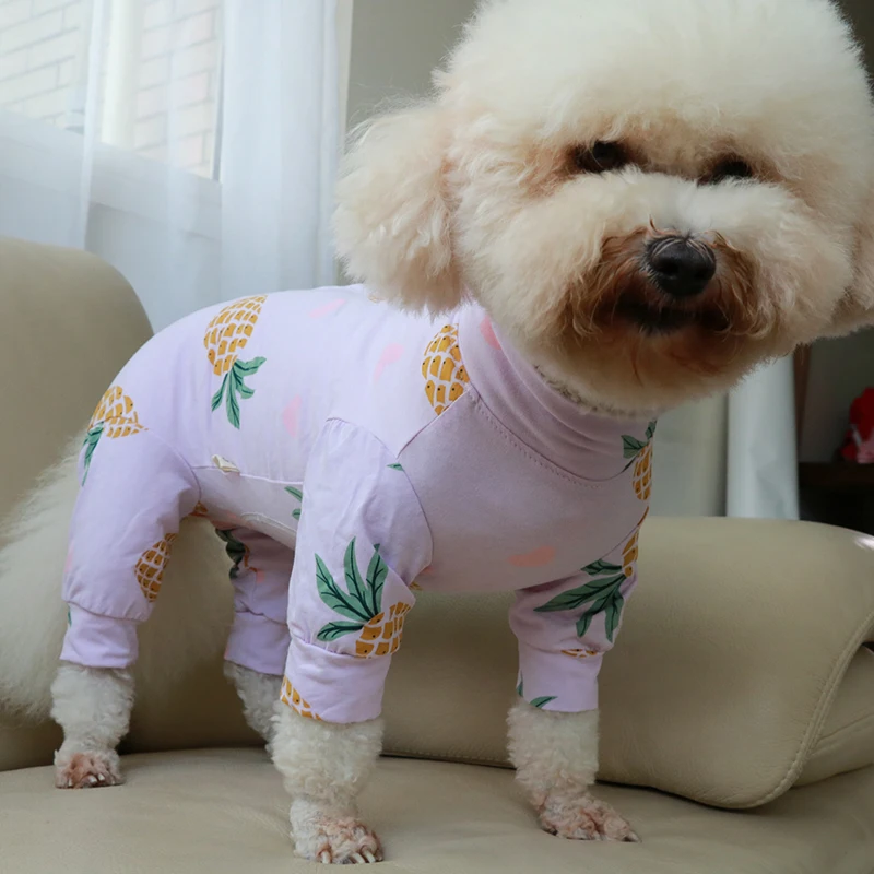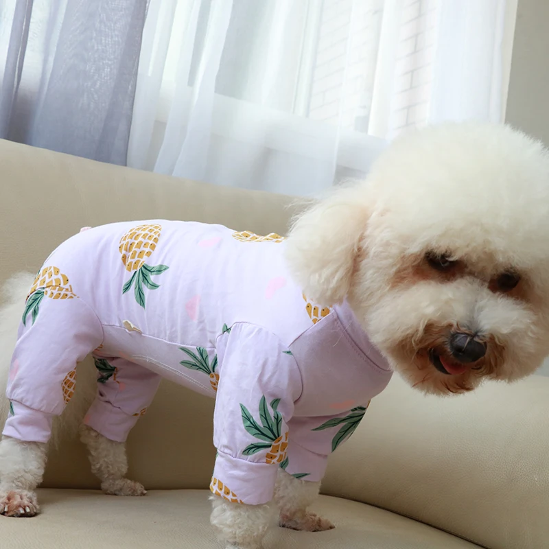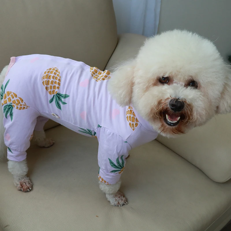 Комбинезон для собаки тонкий комбинезон с принтом, 100% хлопок, одежда для щенков, пижама для защиты живота для маленьких собак, Пудель Чихуахуа, домашняя одежда