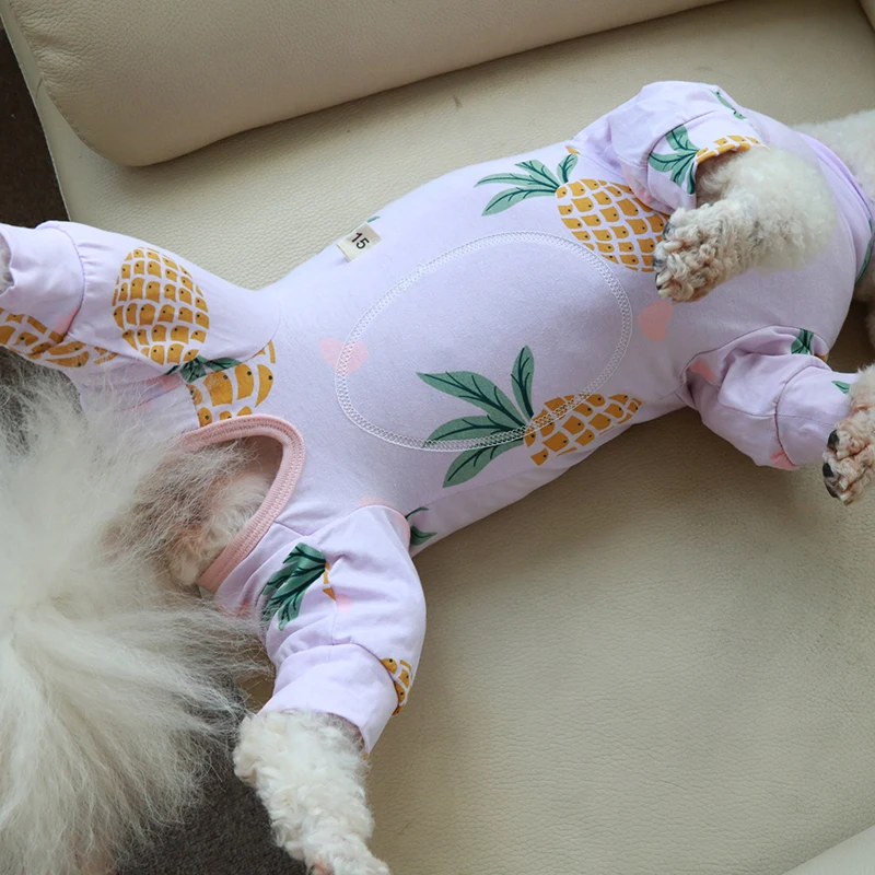 Комбинезон для собаки тонкий комбинезон с принтом, 100% хлопок, пижама для щенка, защищает живот, для маленьких собак, чихуахуа, пуделя, домашняя одежда