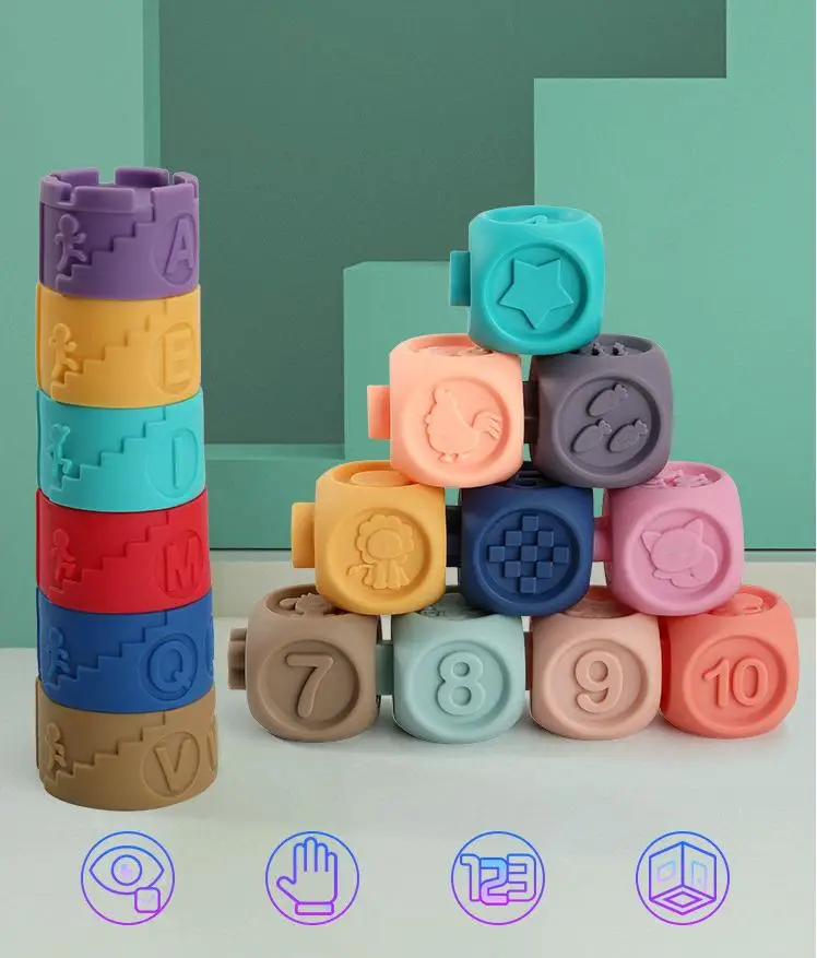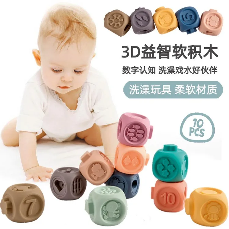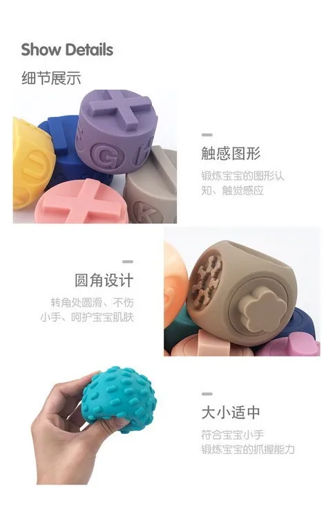 Игрушки для раннего развития, блокирует обучение для новорожденных, Мягкие 3D шарики для рук, резиновый кубик для ванны, сжимаемая детская игрушка
