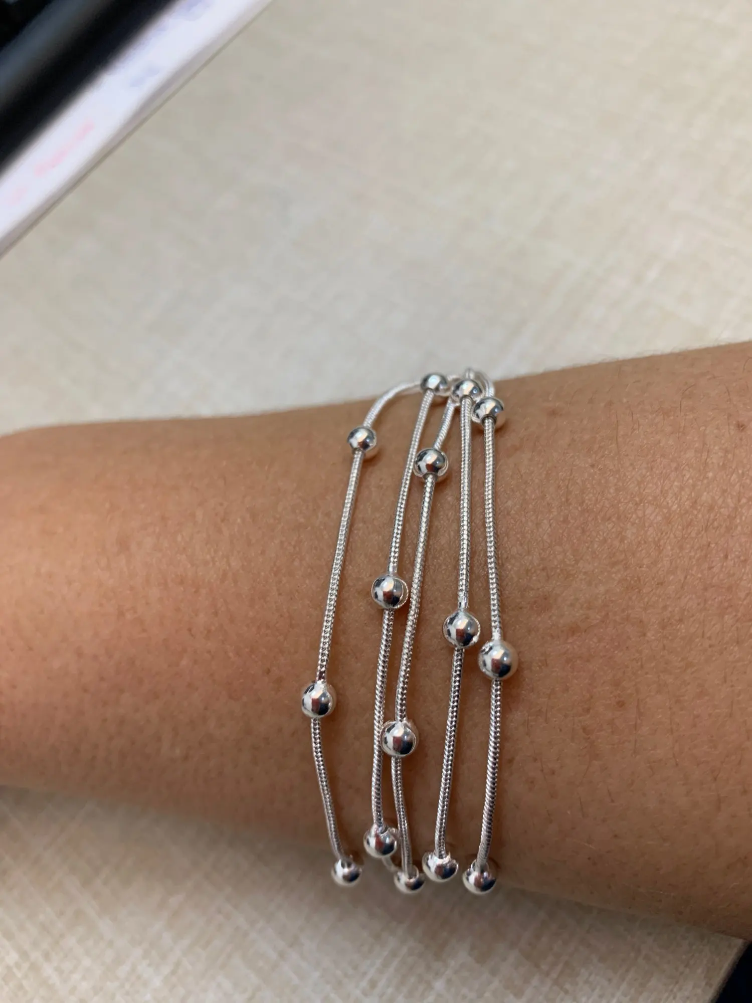 Браслеты из стерлингового серебра 925 пробы женские, цепочка-змейка с круглыми бусинами в стиле ретро, свадебные и рождественские подарки, Модная бижутерия