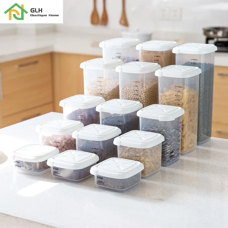 Прозрачная шкала герметичный контейнер для хранения пищевых продуктов, кухонный пластиковый резервуар для хранения зерна, новый прозрачный контейнер для сохранения свежести