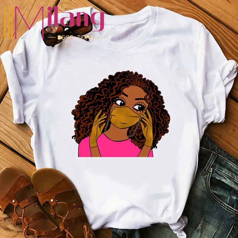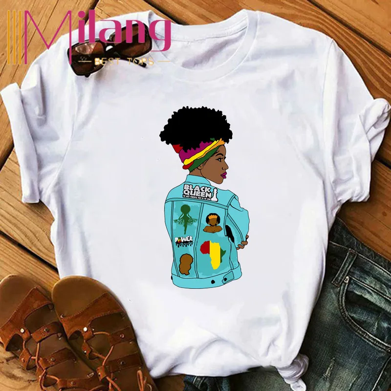 Американском стиле Черная Королева "never give up", с принтами Футболка Мода черная девочка футболка "Магия" Лето меланин dope Забавные футболки