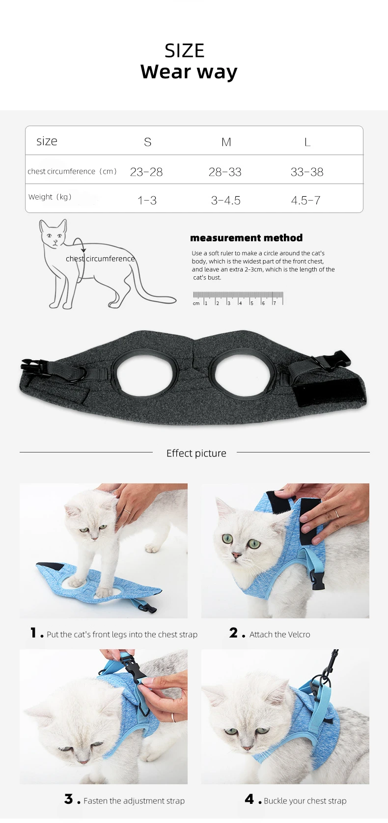Хорошо сделано, легкий жгут. Приятно, что он не вокруг шеи кошки, красивый и безопасный дизайн с липучкой + дополнительный ремень безопасности. Вы можете прикрепить поводок на 2 точки на поводке для дополнительной безопасности. Получил в течение 10 дней в Нидерландов. Подходит для мышечной кошки 1 год (размер L), мы получили его очень легко. Но он очень боится этого, кружится с ним необычно и, наконец, падает. Его прежний владелец никогда не тренировался с ним, поэтому он не привык к этому. Recommend мы настоятельно рекомендуем этот товар, ваш питомец в безопасности!