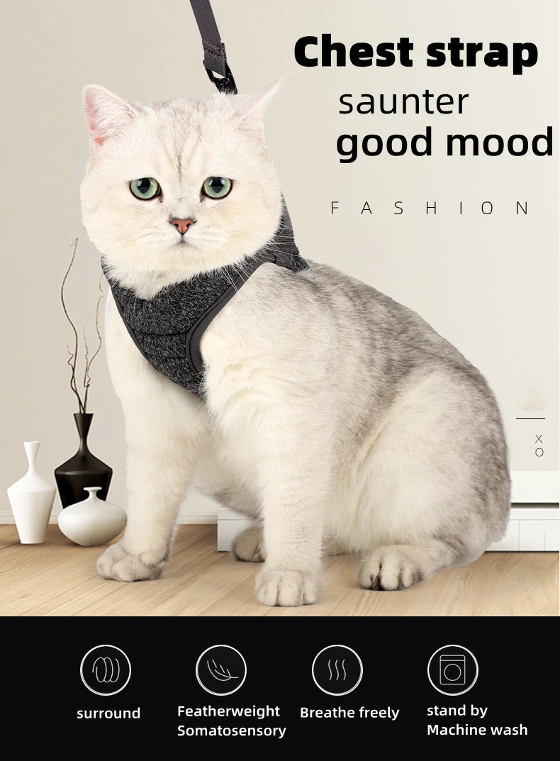 Шлейка для котят, регулируемая, с изображением кошек пояс, легкая, дышащая, мягкая