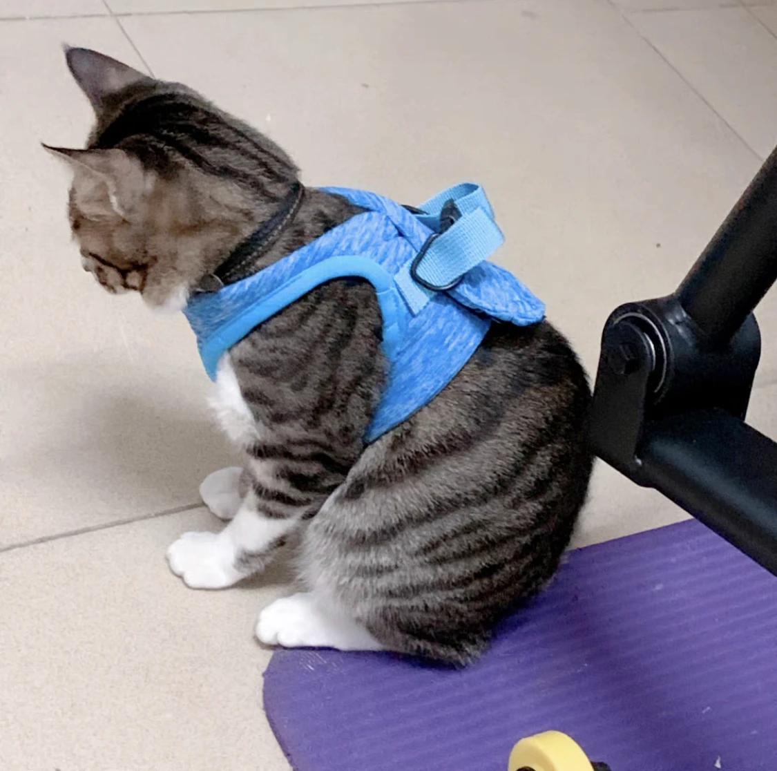 прекрасная шлейка, очень удобная, кошка даже не успевает понять, что на неё надели шлейку. единственное, в сильном испуге кошка всё таки вырвалась из шлейки, каким-то образом вытащив лапки.