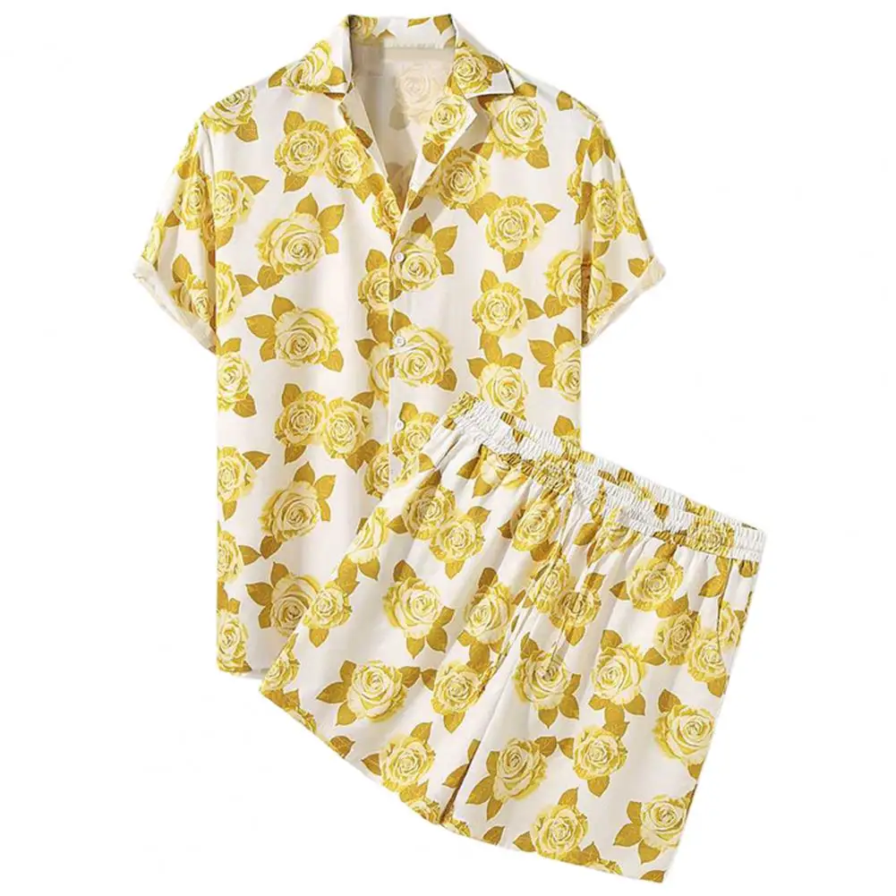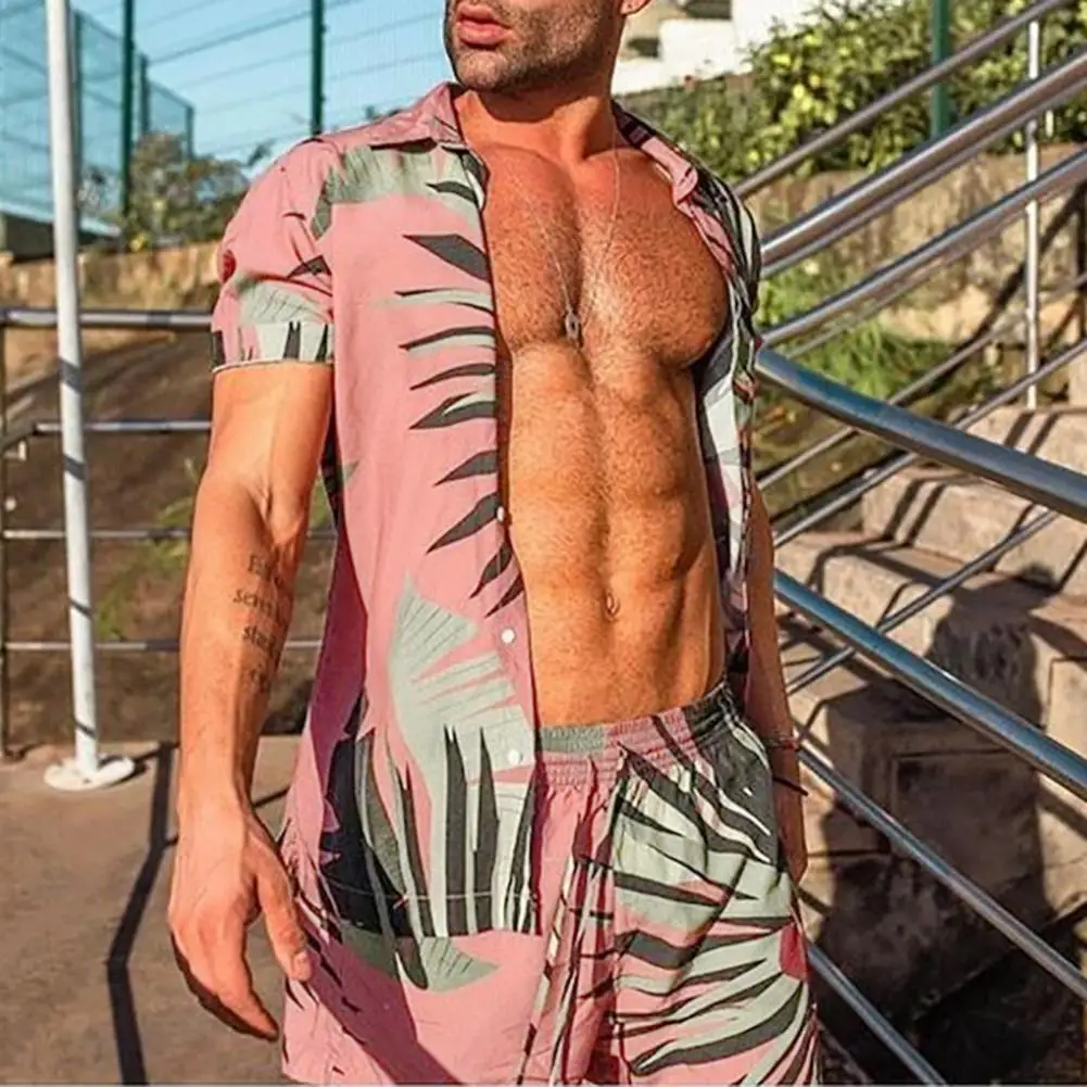 Мужской комплект из футболки и шортов, летняя однобортная футболка с цветочным принтом, Гавайский стиль
