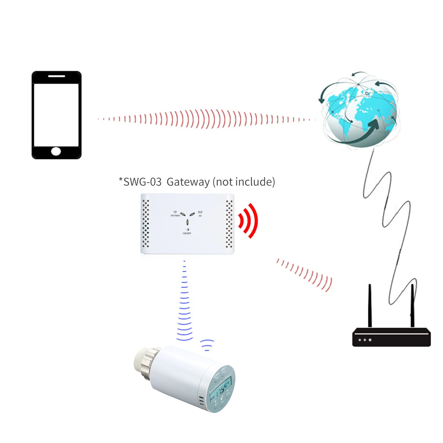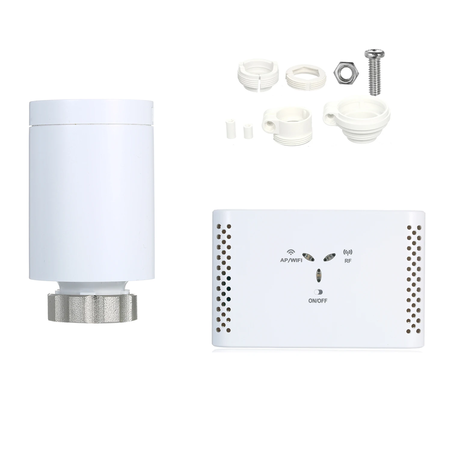Это стильный и точный программируемый контроллер TRV, искусственно устанавливаемый комнатной температурой, в основном используется в напольной системе отопления для контроля закрытия и открытия трубы. Был разработан для самостоятельного управления радиаторами отопления, а также может осуществлять удаленный мониторинг с помощью телефона. Он устанавливается на новые или существующие Термостатические клапаны радиатора (короткое имя --- TRV) и в соответствии с серией запрограммированных соединений для контроля температуры в помещении. Особенности: Энергосбережение --- этот привод прекрасно поворачивается для состояния клапана, открываемого, в соответствии с комнатной температурой и установочной температурой, чтобы соответствовать лучшему статусу энергосбережения для отключения срока службы батареи. Многофункциональность --- работа с интеллектуальным шлюзом обеспечивает контроль голосового пульта. С противообрастающей функцией, Защитите ваш клапан не застревает. Функция блокировки ребенка и функция защиты от повреждений, более безопасная и долговечная Компактный дизайн --- небольшой цилиндрический корпус с ЖК-дисплеем и 5 кнопками облегчает чтение и установку значения в темноте. Крепление на радиатор нелегко разбиться. Легко установить --- метод установки гайки, легко и быстро установить, удобно разбирать. Применяется для --- электрического нагревательного привода ветрового клапана, небольшого клапана и динамического балансирующего клапана. Подходит для дома, торгового центра, отопления отеля и центрального контроля температуры кондиционера, контроля комнатной температуры. Примечание: Этот термостатический клапан радиатора должен работать с умным шлюзом (SWG-03) пожалуйста, покупайте отдельно! И шлюз не включен в этот продукт! Ссылка на приложение: 1. Загрузка: Нажмите app store или рынок приложений Android, чтобы загрузить приложение «Tuya Smart». 2. Регистрация и вход в систему: нажмите «Зарегистрировать», чтобы создать учетную запись. Введите пароль вашей учетной записи для входа в систему. 3. Добавьте шлюз «сброс» для 4s, пока зеленый светильник не загорится. (Примечание: только 2,4 ГГц сети Wi-Fi поддерживаются. Пожалуйста, выберите какой-либо 2,4 ГГц сети.) 4. Добавить контроллер (шлюз должен быть добавлен перед добавлением контроллера.) 5. После успешного добавления контроллера вы можете управлять устройством через приложение. Такие как: настройка температуры, включение/выключение питания, настройка программирования, настройка многодневного программирования, временная Настройка отключения. Характеристики: Система поддержки: Android и iOS Ссылка на приложение: Tuya smart Источник питания: 2 батарейки типа АА (не входят в комплект) Диапазон настройки температуры: 5 ~ 30 ℃ Температура погрешность настроек: 0,5 ℃ Диапазон отображения температуры: 0 ~ 50 ℃ Диапазон рабочих температур: 0 ~ 50 ℃ Диапазон беспроводной передачи: открытое расстояние 70 м; Внутренний диапазон 30 м Цвет: белый Размер посылка: 12*6*6 см/4,7*2,4 * 2.4in Вес посылка: 188 г/6,6 унций Посылка: 1 * термостат 1 * набор фитингов для установки 1 * Руководство пользователя