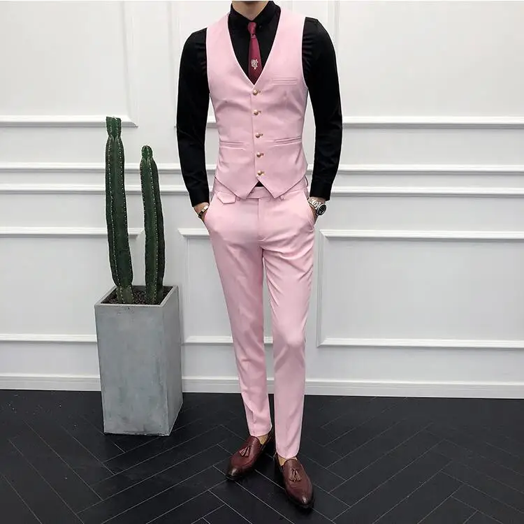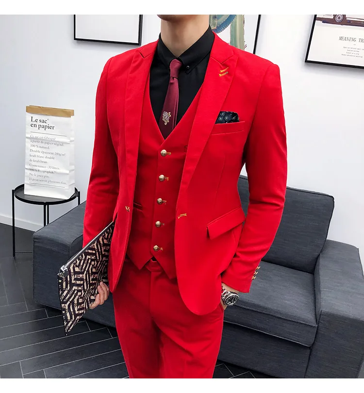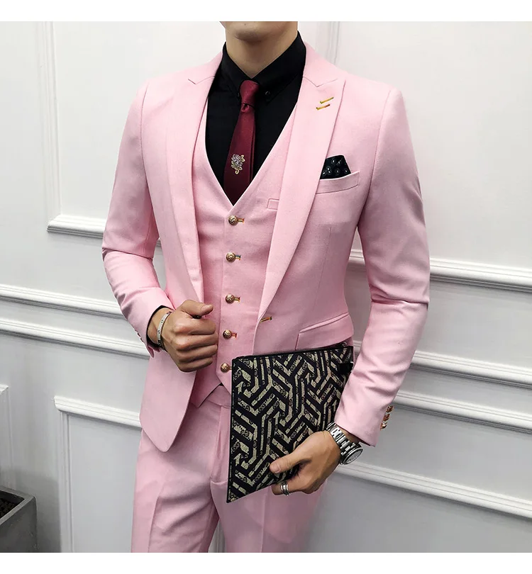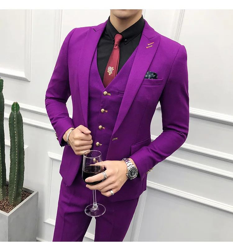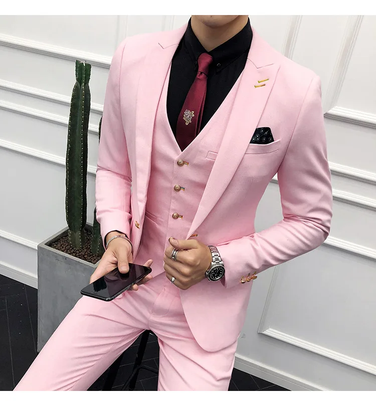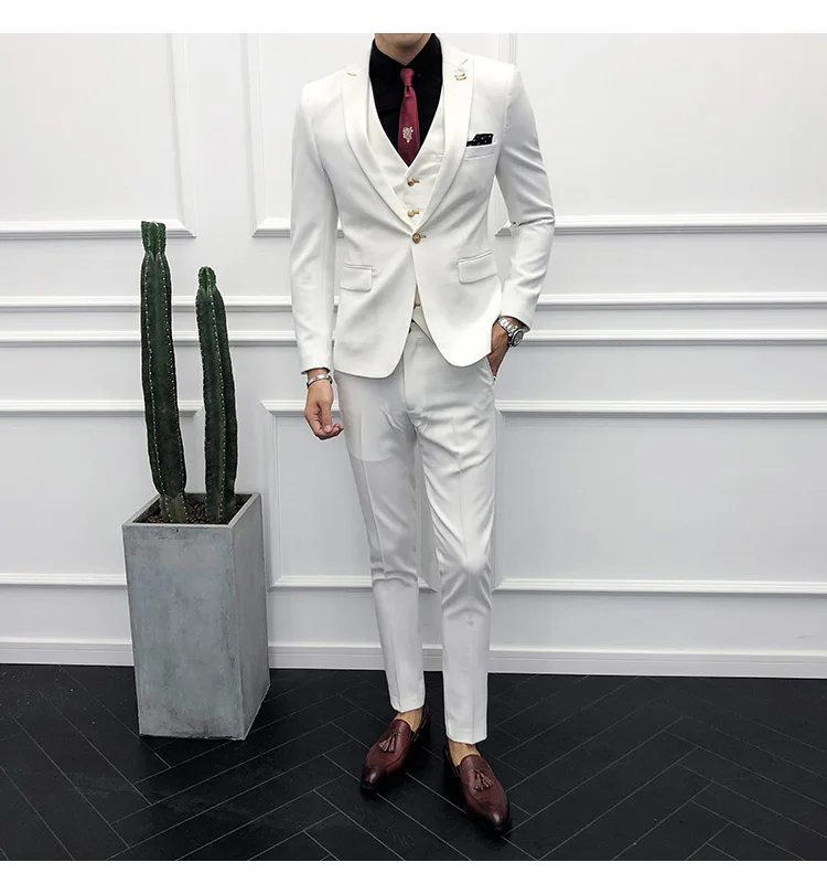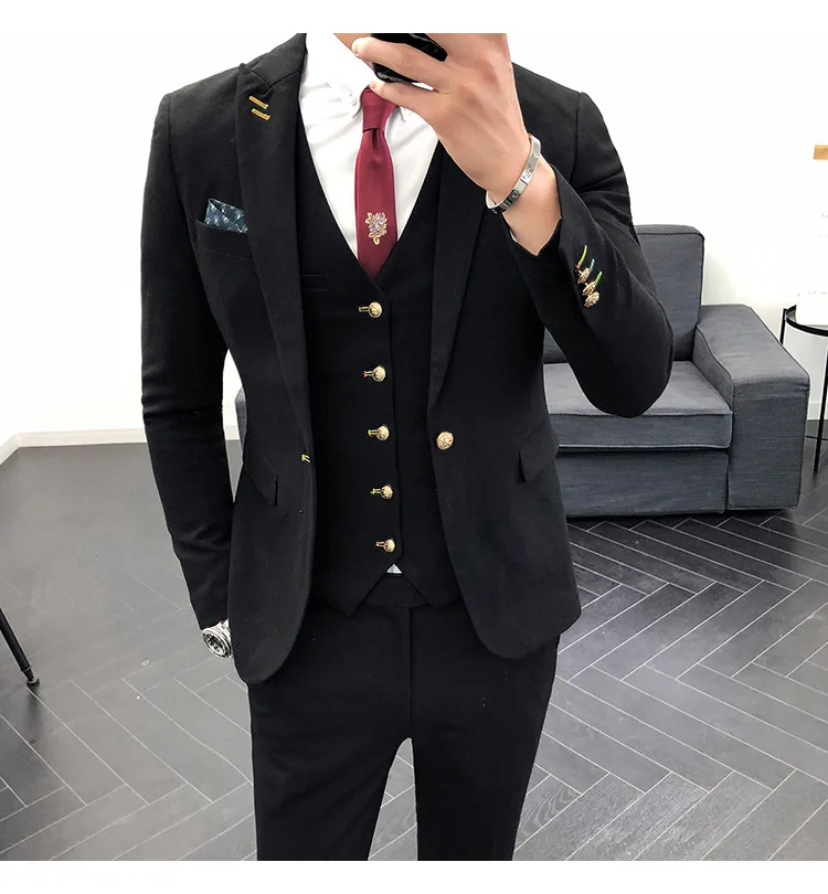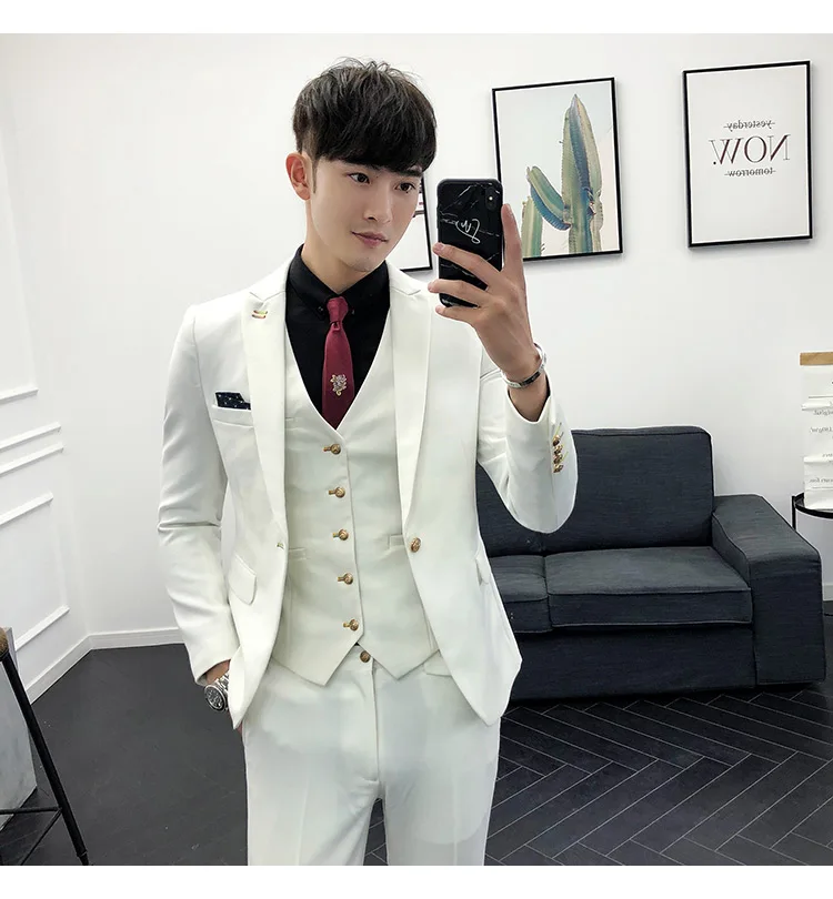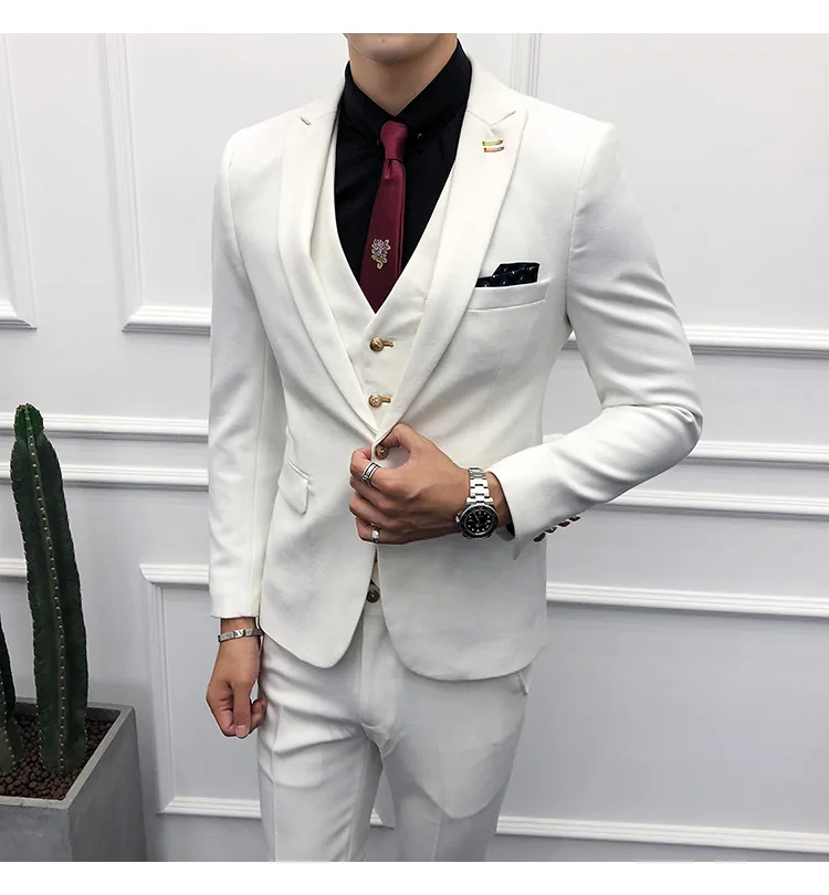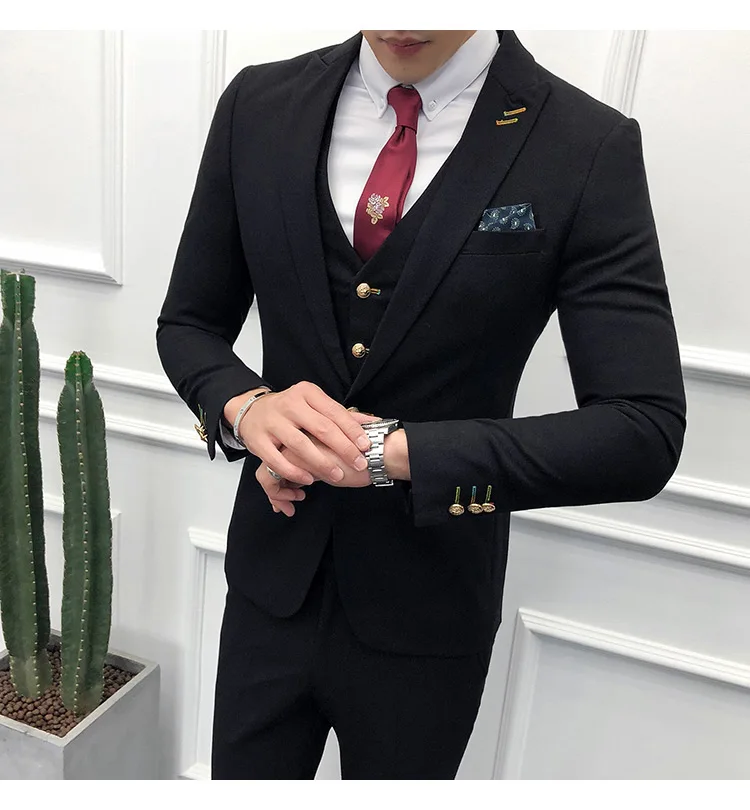 (Пиджак + брюки + жилет) Мужской 2021 эксклюзивный однотонный Тонкий деловой костюм комплект модное мужское свадебное платье для жениха Повседневный смокинг для мужчин
