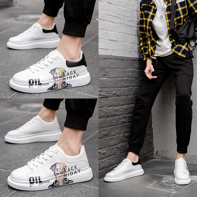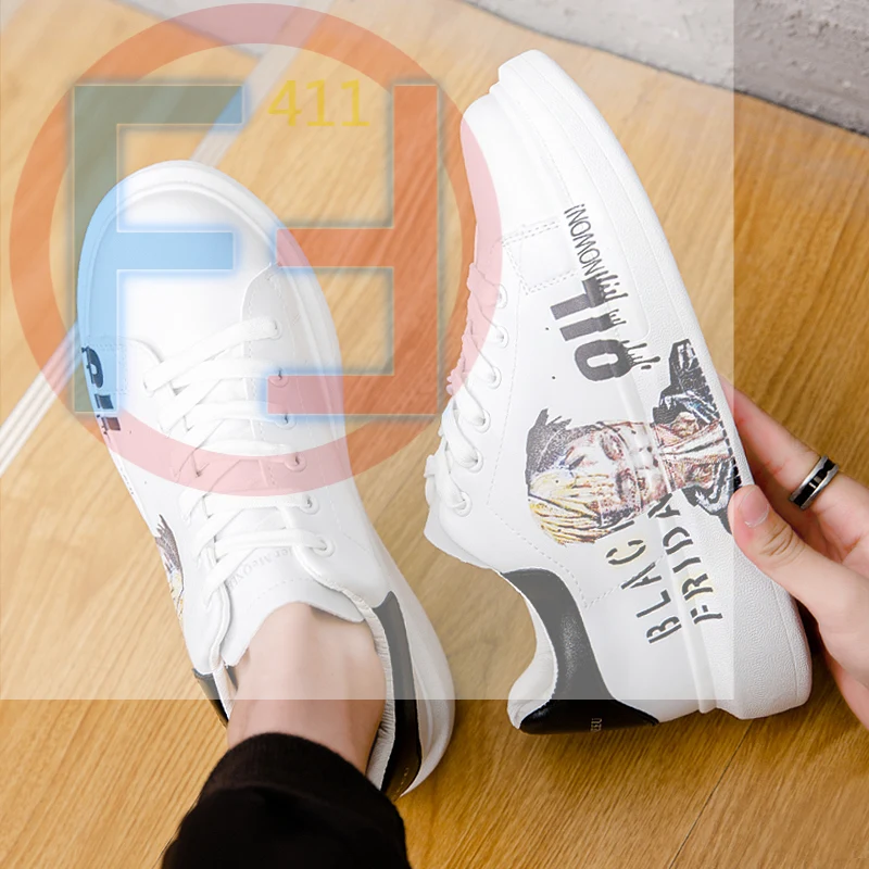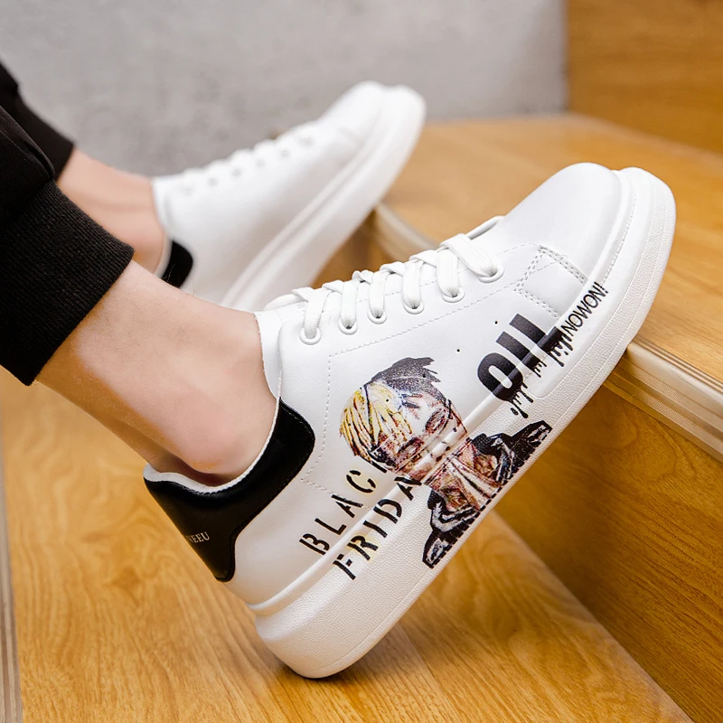 Лидер продаж; Мужская Спортивная обувь на плоской подошве; Белая повседневная обувь; Удобная дышащая обувь; Модная школьная обувь с граффити