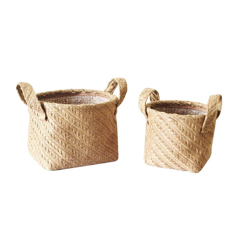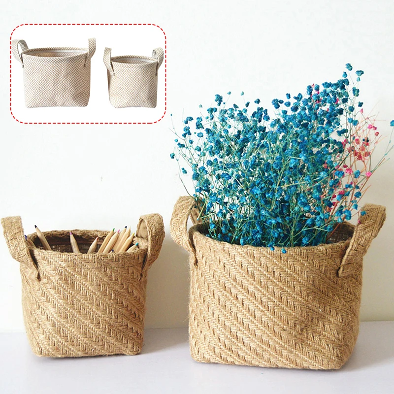 Плетеный цветочный горшок из джутовой ткани, Настольный ящик для хр...