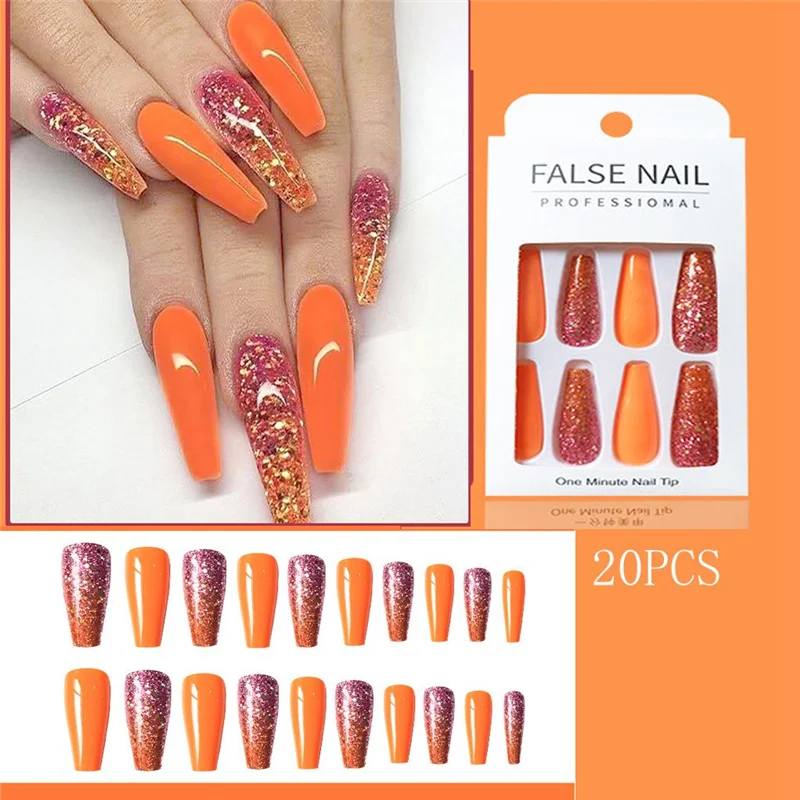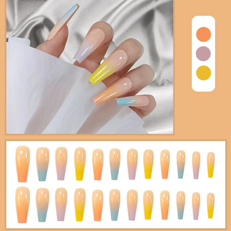24 шт. длинные ногти французского маникюра съемный балерина гроб накладные ногти хит цветные накладные ногти с Стразы Пресс на ногтей, для маникюра