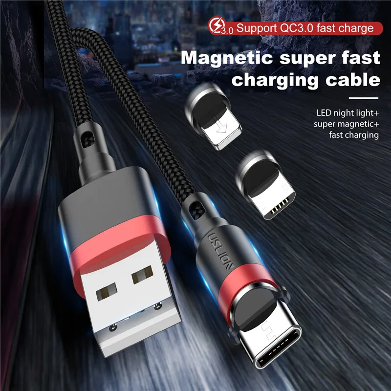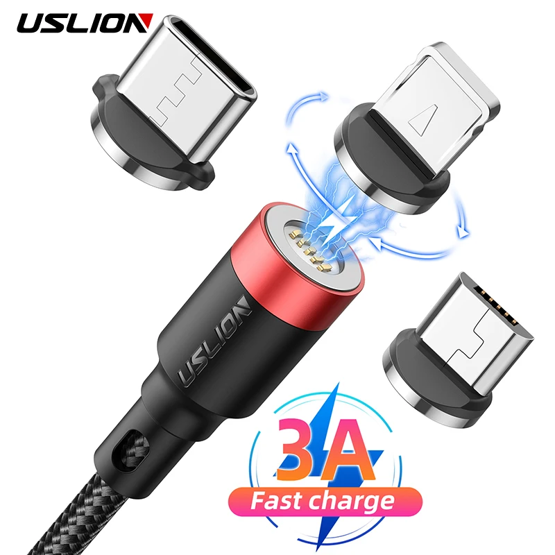 Магнитный USB-кабель USLION для быстрой зарядки iPhone Xiaomi, провод для передачи данных, шнур USB C, магнитное зарядное устройство для телефона, кабель Micro USB Type-C