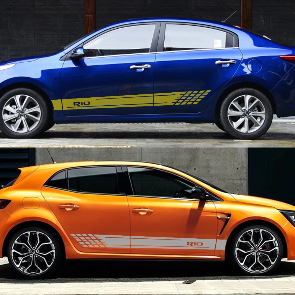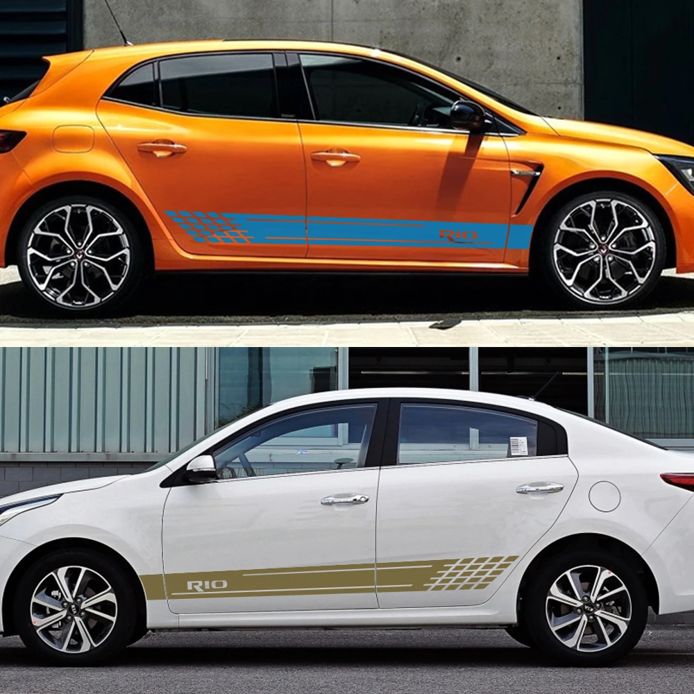 2 шт. наклейки в полоску для автомобильной двери, боковой юбки для Kia Rio 3 4 K2 K3 X-Line, автомобильные аксессуары, декоративные виниловые пленки, наклейки