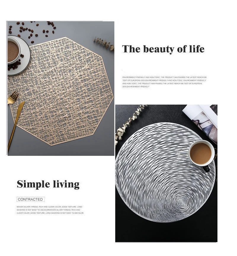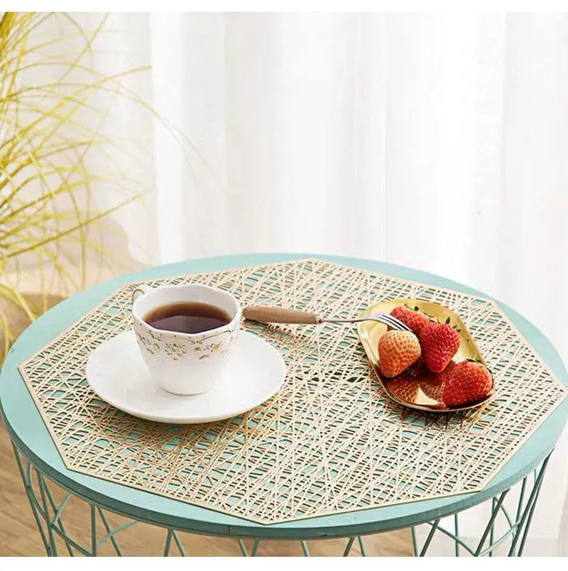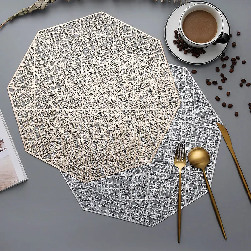 38 см восьмиугольная подставка Placemates для столов, комплект из 4 предметов золотого, серебряного цвета полые термостойкий PVC коврик для посуда для Кухня
