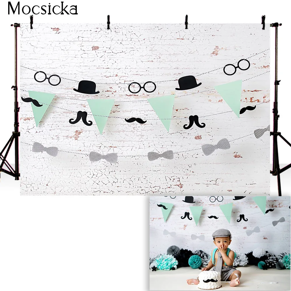 Фотофон с изображением человечка, бороды, кирпичной стены для студийной фотосъемки новорожденных