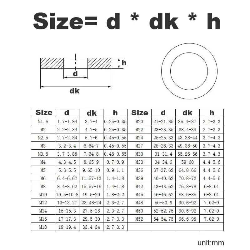 10100 шт. GB97 DIN125, черная плоская шайба из нержавеющей стали 304, M1.6 M2 M2.5 M3 M3.5 M4 M5 M6 M8 M10 M12, простая прокладка