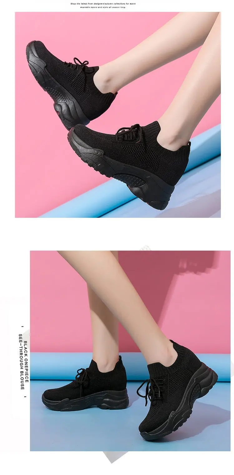 Кроссовки на платформе; Женская обувь, увеличивающая рост; Дышащая ...