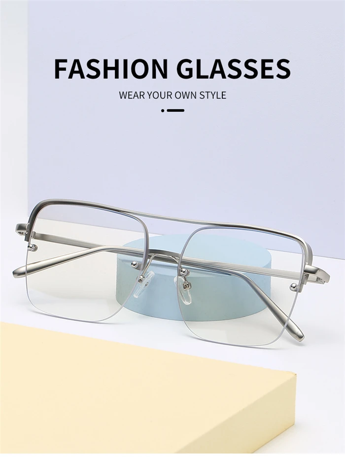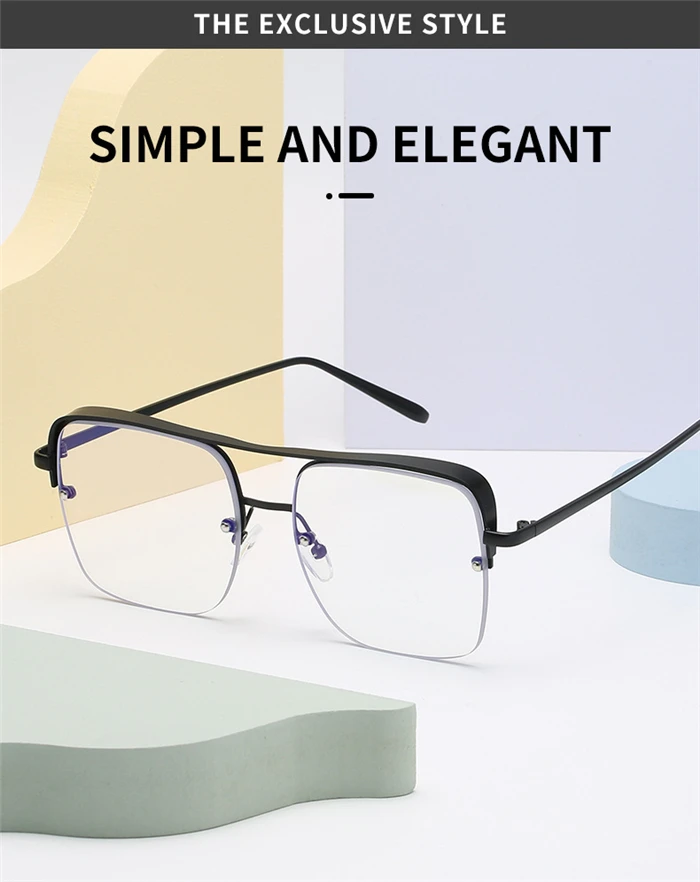 Двойной луч с плоскими стеклами и половинной рамкой квадратных по рецепту Для женщин мужчин от вредного синего излучения короткий-очки для коррекции зрения диоптрий 0-0,5-0,75-6,0