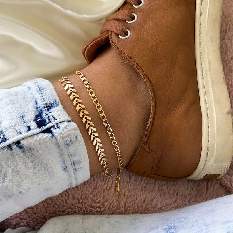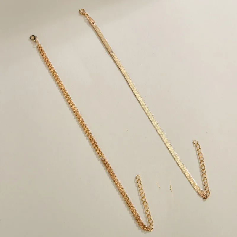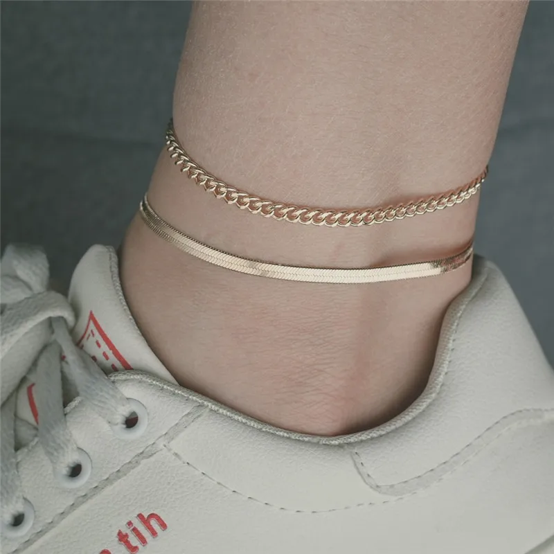 Браслеты-анклеты для ног женские, простая цепочка золотого цвета на ногу, 2 шт.компл., подарочные украшения для пляжа, 2021