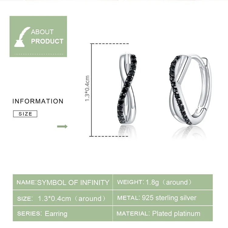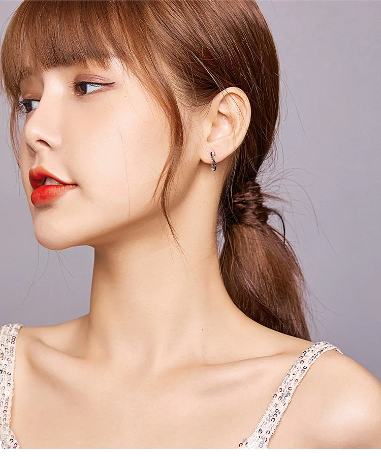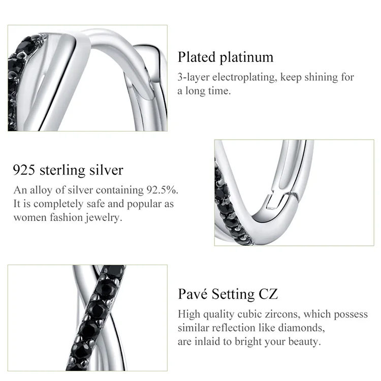 Bamoer Настоящее серебро 925 пробы черный CZ серьги-кольца с крести...
