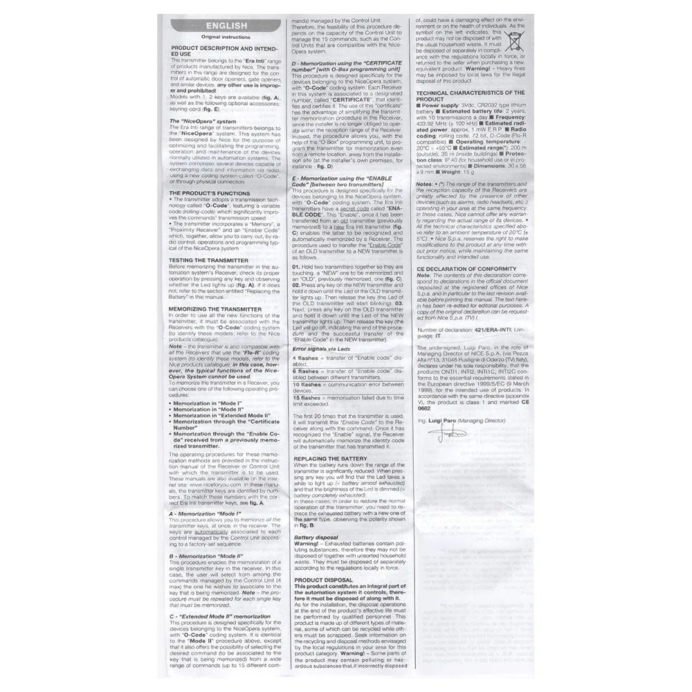 Пульт для шлагбаумов и ворот NICE INTI2 красный (цветной)