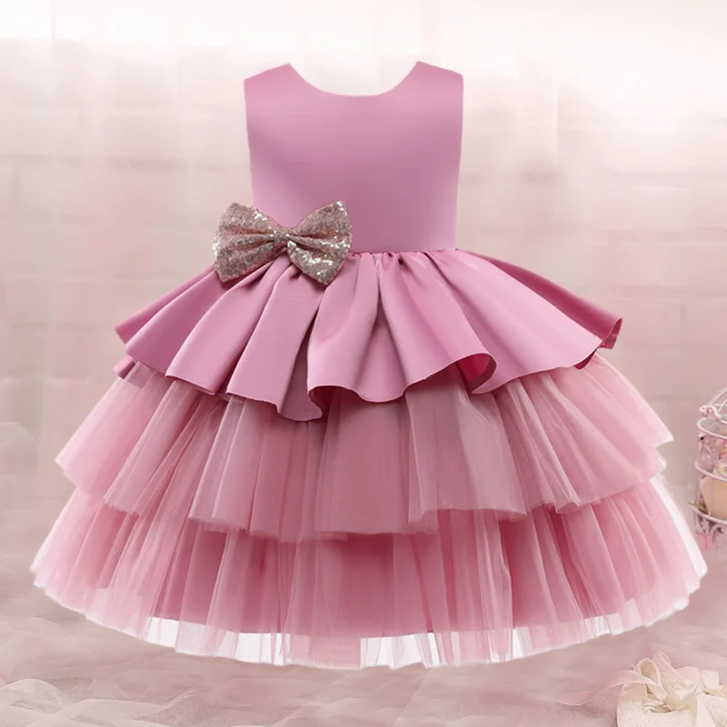 Платье для маленьких девочек на 1 день рождения, детское кружевное Сетчатое платье с блестками, костюм принцессы для крещения, детское бальное платье Eleagnt на свадьбу, От 2 до 4 лет