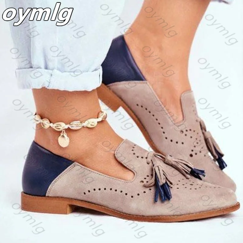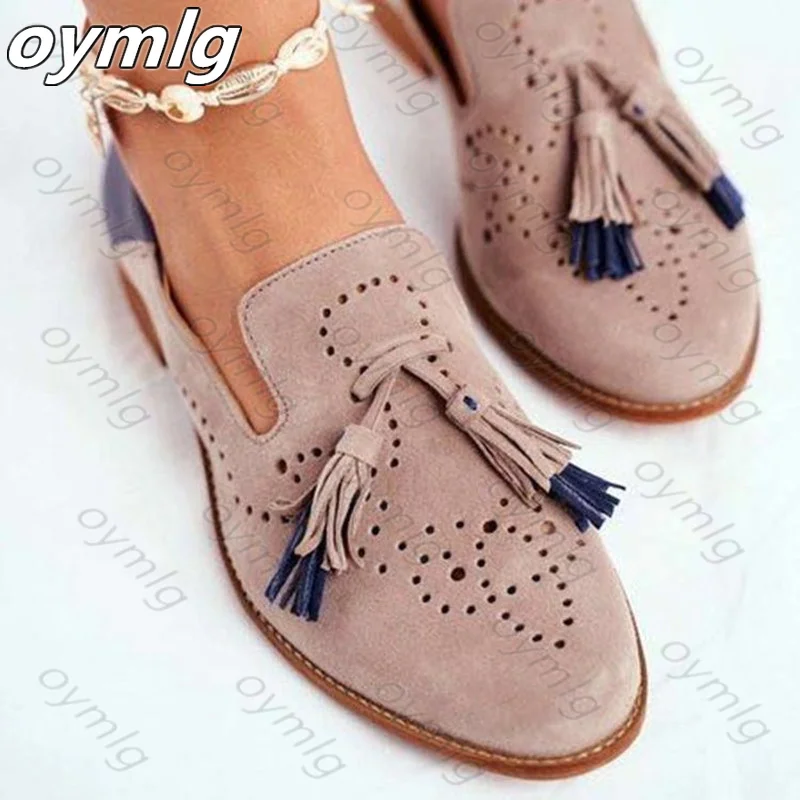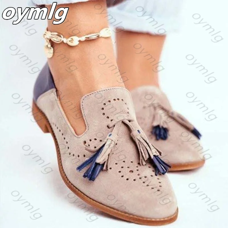 Лоферы женские из искусственной кожи, на плоской подошве, с кисточками, круглым носком, с резной бахромой, 2021, 35-42, для осени, размера плюс