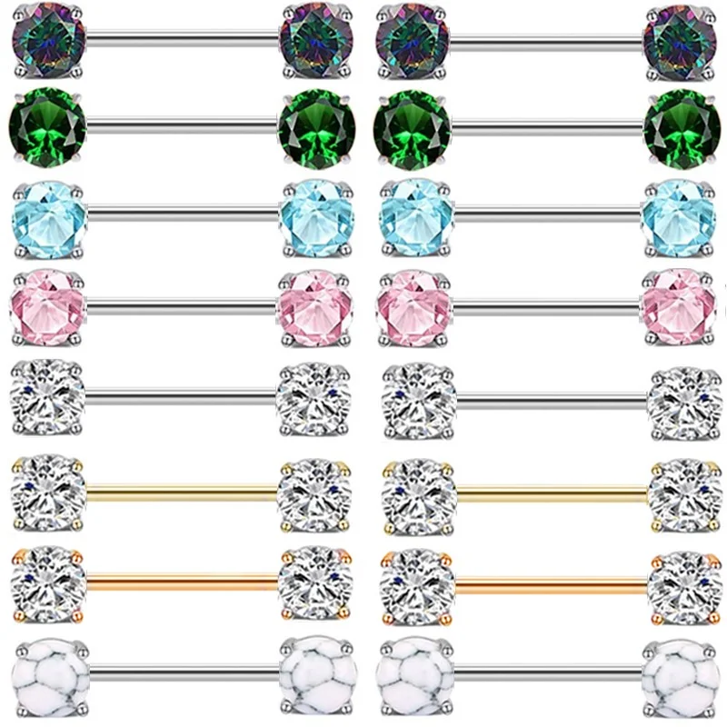 1 пара хирургические Сталь с украшением в виде кристаллов ниппель штангой лот 14 г, блестящее циркониевое Ювелирное Украшение для пирсинга соска оптом Для женщин патрубок кольцо ювелирное изделие для тела