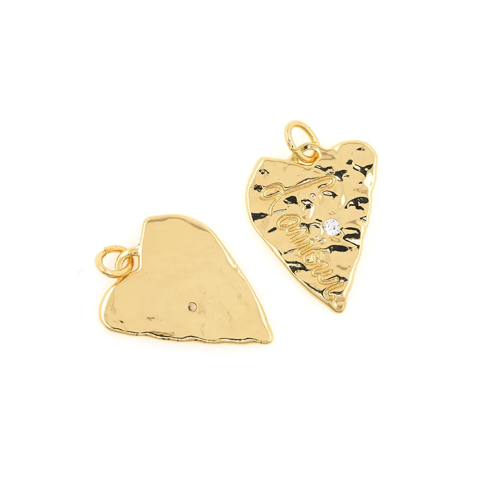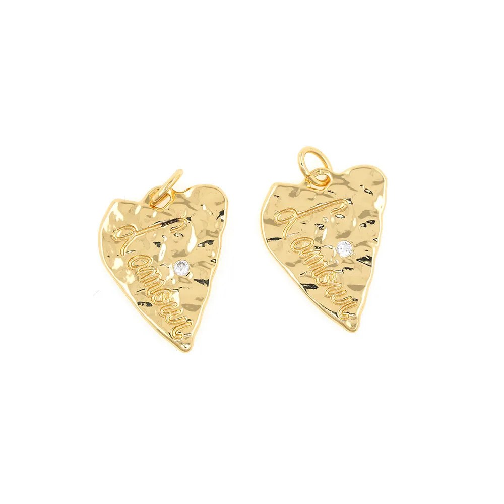 Медный шероховатая поверхность, украшенные сердечком со стразом Подвески Золотая подвеска в виде сердца для "сделай сам" для изготовления украшений вручную аксессуары