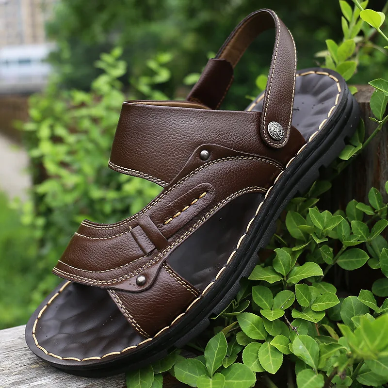 20212021; Летние шлепанцы; Пляжные сандалии для мужчин из натуральной кожи для мужчин; Повседневные мужские сандалии; Туфли-сандалии слайд