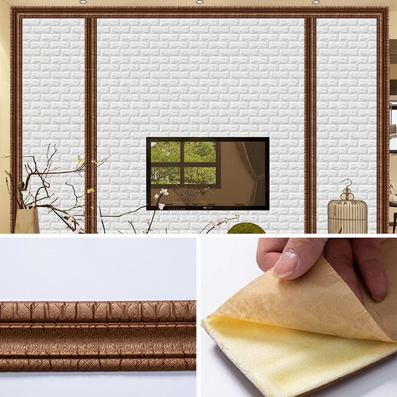Особенности:** Материал хорошего качества: Эта пенопластовая отделка изготовлена из высококачественного ПВХ материала, коррозионно-стойкого, водонепроницаемого, влагостойкого, без запаха и нетоксичного.** Практичный в использовании: водонепроницаемый, анти-сжатие и анти-столкновение, простой в использовании с клеем, легко украсить стену, ремонт стен и многое другое.** Защита от столкновений: изготовлено из гибкой формовочной формы, изготовлено из ПЭ пеноматериала, мягкое, анти-столкновение, безопасно для ребенка, семьи.** Самоклеящаяся: Экологически чистая клейкая Задняя лента, легкая установка, очистка и прилипание, никаких других инструментов не требуется, сильный клей не позволяет легко упасть.** Простота в использовании: Измерьте и отрежьте нужную длину и размер, снимите клейкую подложку и приклейте к гладкой поверхности.** Применимые поверхности: могут прилипать практически к любой гладкой поверхности, такой как плитка, пластик, мрамор, металл, стекло, дерево, гладкая стена и многое другое. Не подходит для использования на грязных или грубых поверхностях.** Широкое применение: Идеально подходит для ванной комнаты, спальни, гостиной, кухни, ТВ фоновой стены, формовки, плинтуса, потолка, границы, шкафа и многое другое. Также можно использовать в качестве защитных наклеек на каждый уголок.** Широко используется: декоративные формовочные Планки для краев, углов и стен. Можно использовать для украшения дома своими руками** Легко моется: водонепроницаемый, влагостойкий и маслостойкий, легко чистится влажным полотенцем