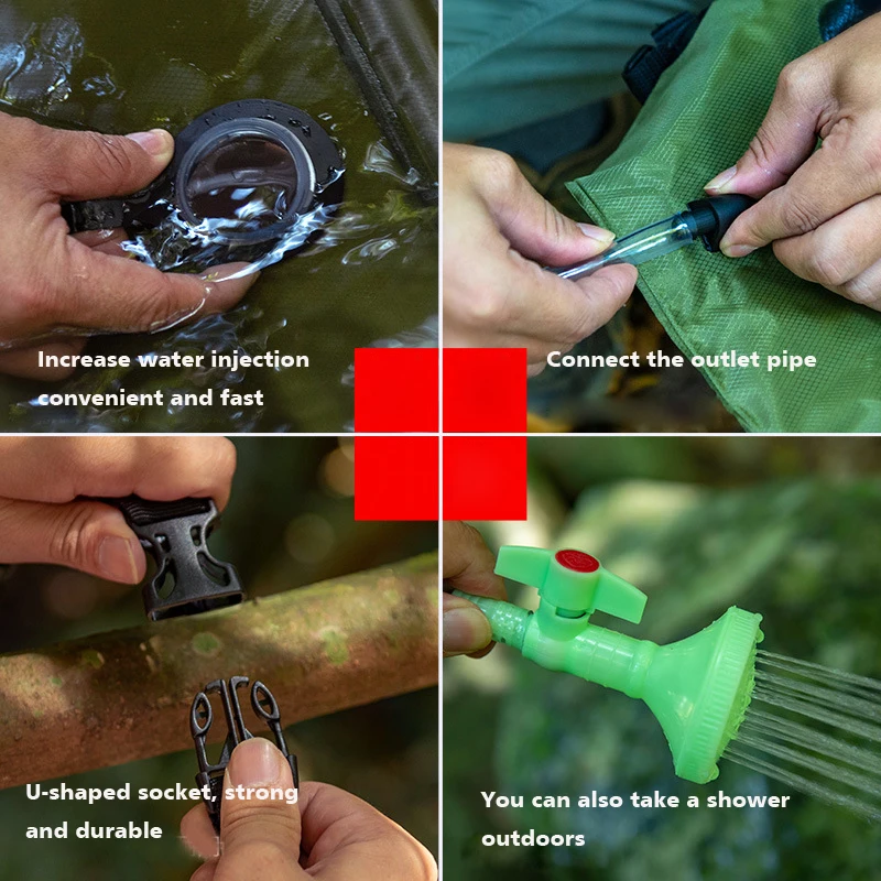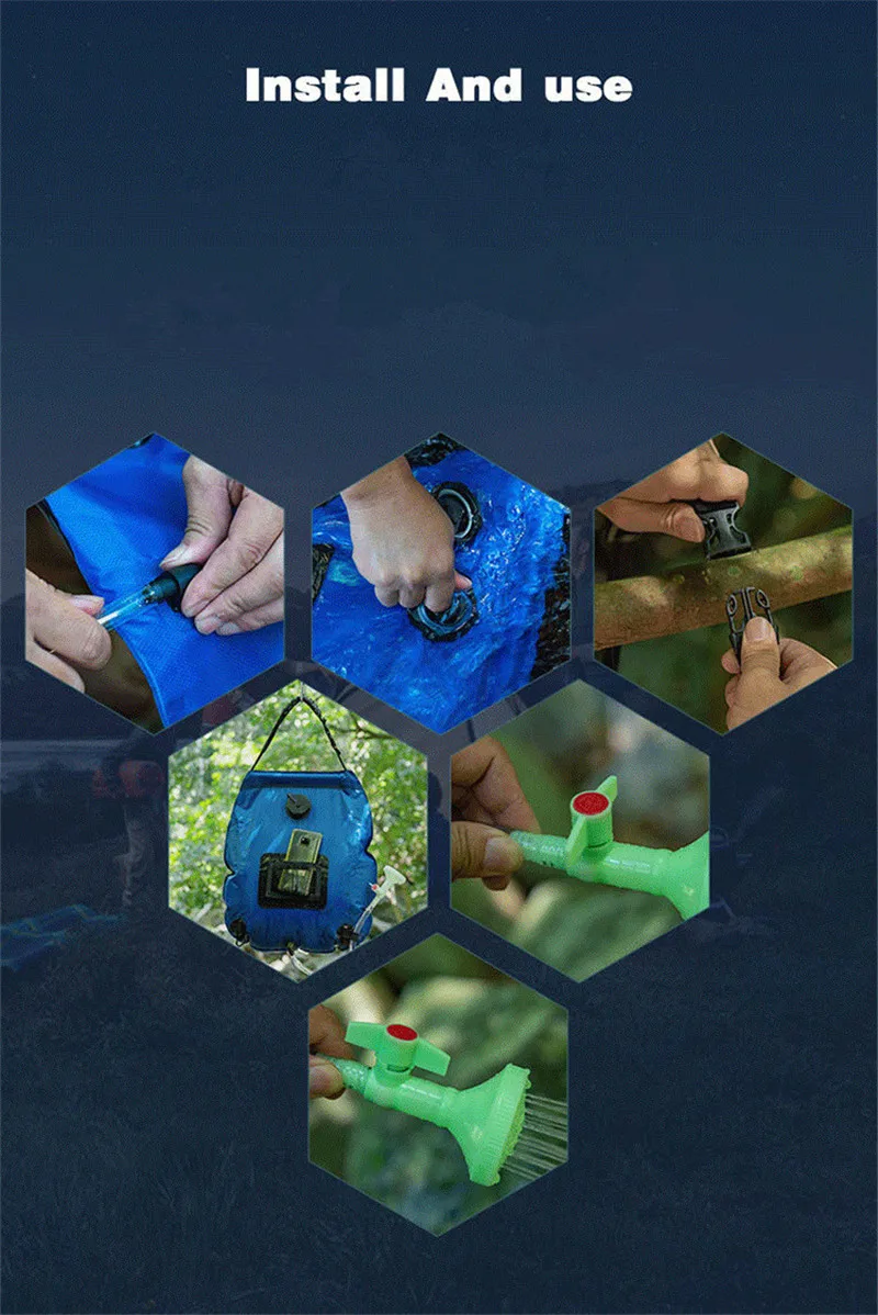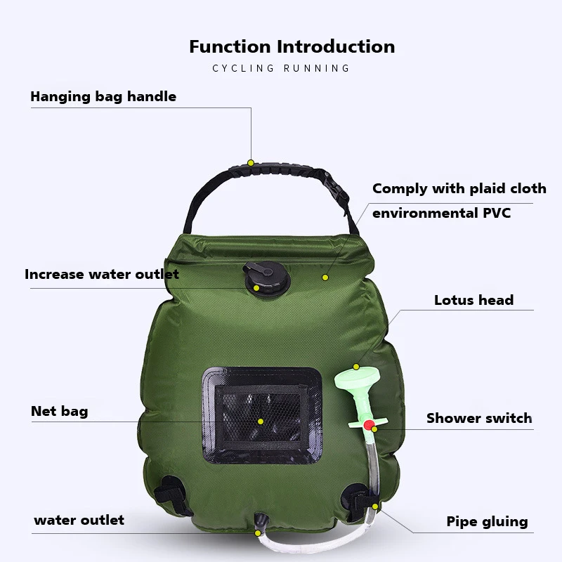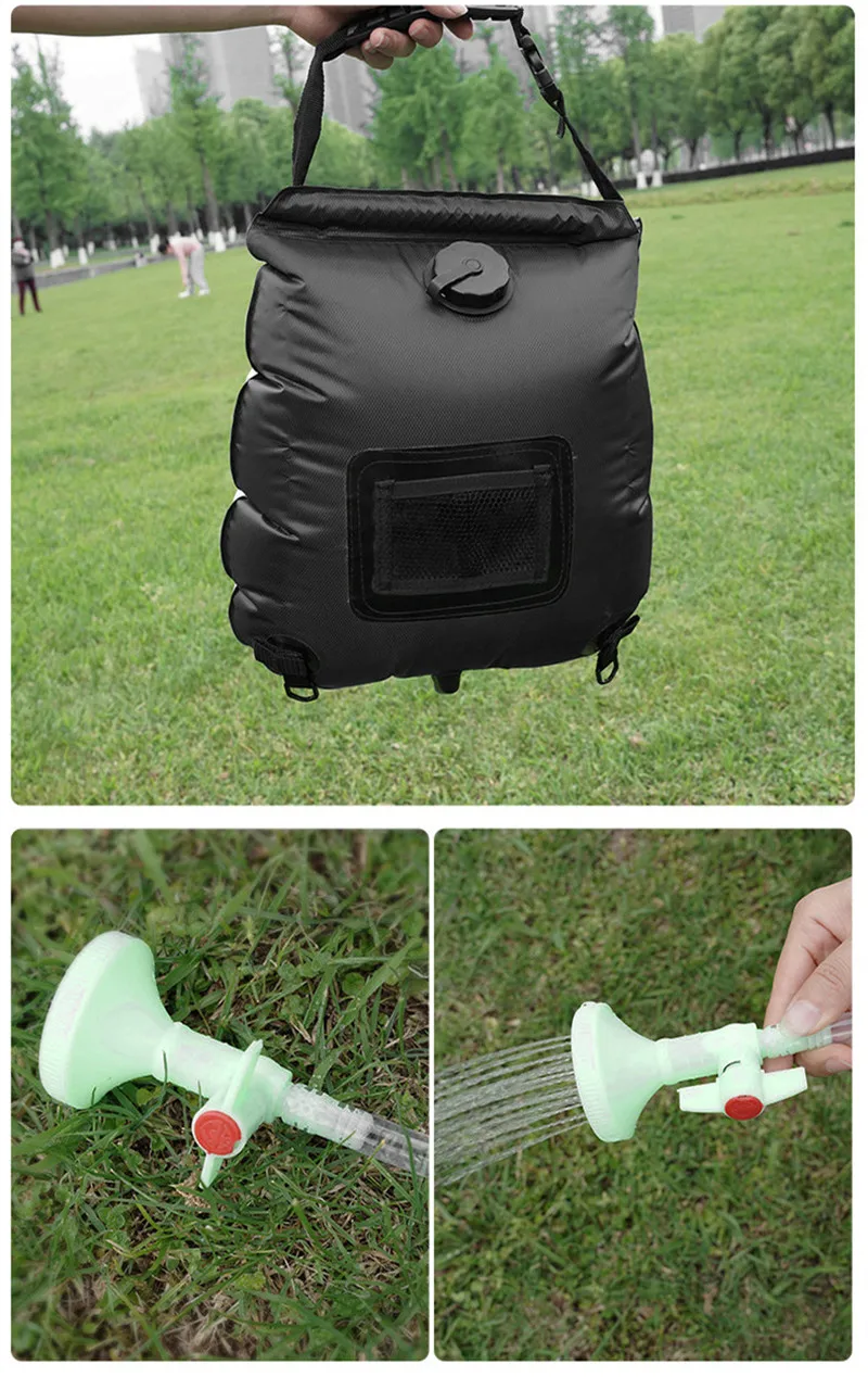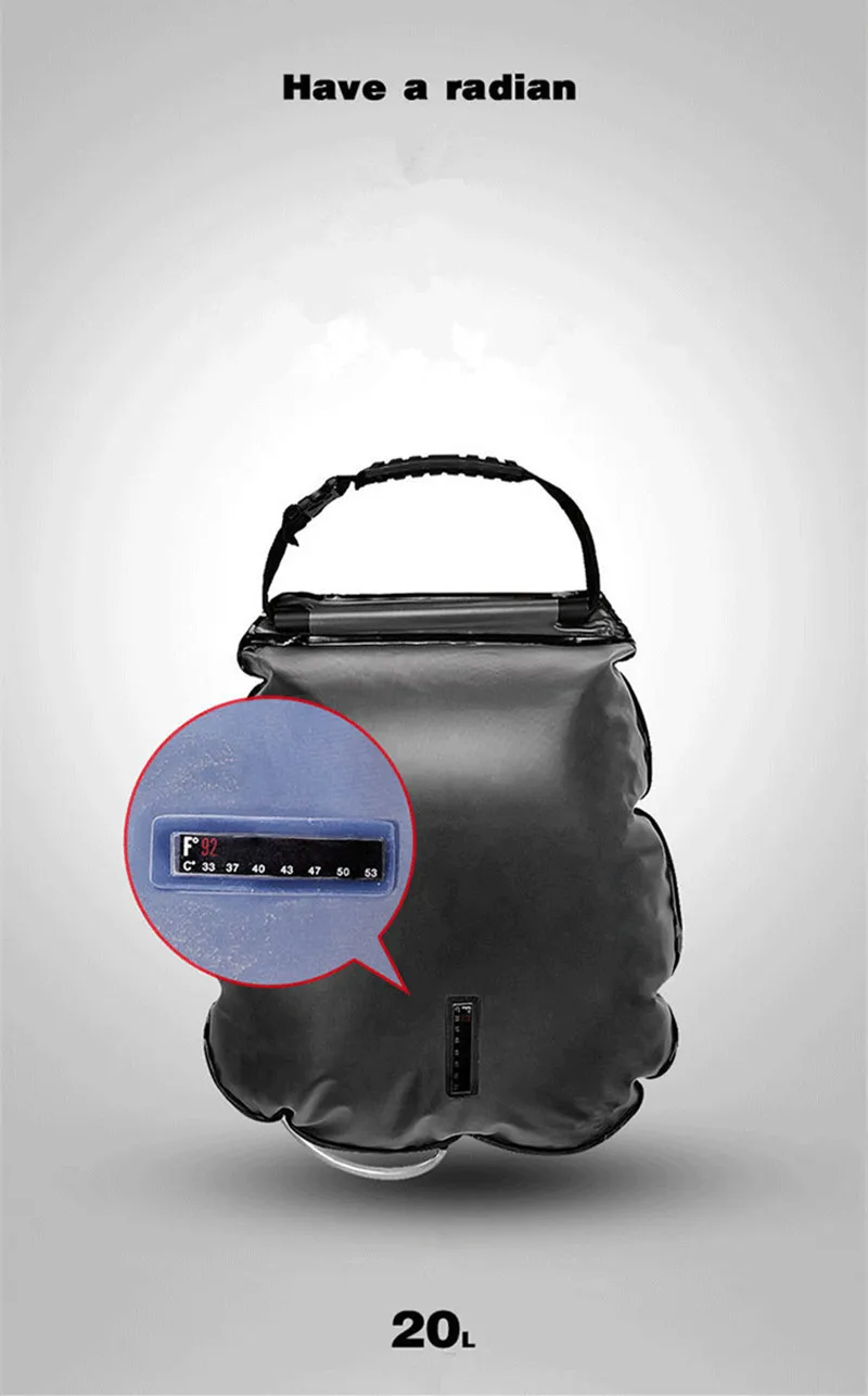 Мешок для воды 20 л с солнечной панелью, мешок для душа для отдыха на открытом воздухе, походов, скалолазания, гидратации, переключаемая Лейка для душа