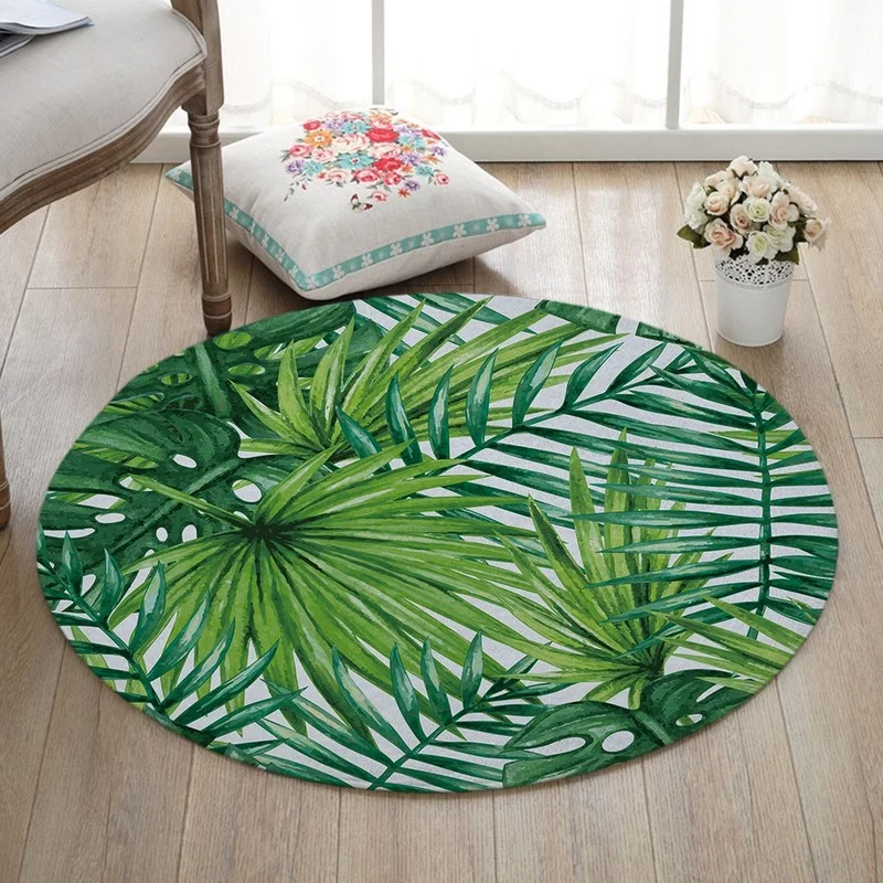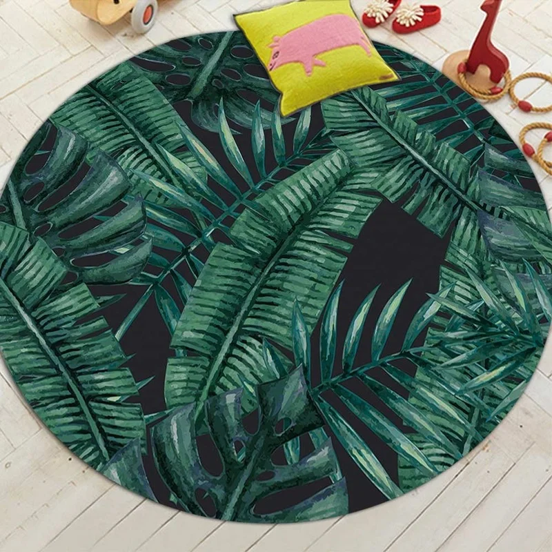 Круглый ковер для гостиной с зеленым тропическим принтом, нескользящий коврик для гостиной, спальни, стула, туалета, ванной комнаты