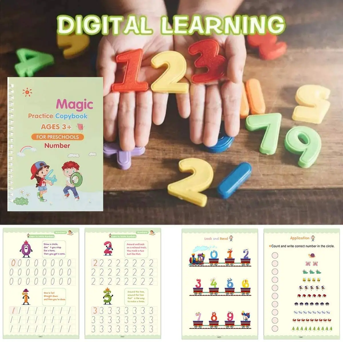 Новый многоразовый мешок детей 3D и выгодно отличается от обычных однотонных вещей для каллиграфии номеров 0-100 рукописного ввода учебное пособие обучения Книга по математике записи для детских игрушек