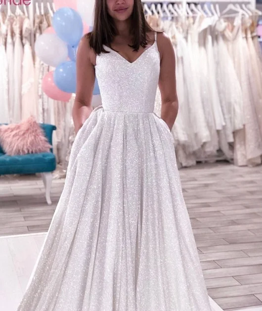 Свадебное платье а-силуэт, блестящие свадебное платье