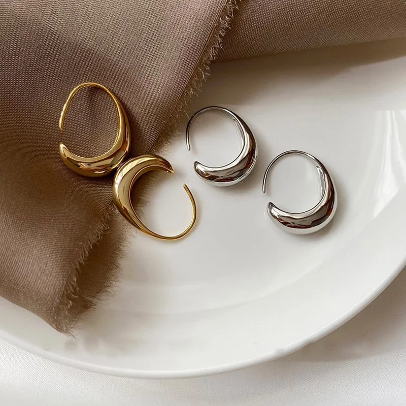Минималистичные Круглые Женские серьги-кольца 2021, тренд, Винтажные серьги золотого цвета, корейские гладкие массивные серьги, аксессуары, необычные серьги