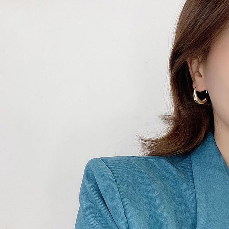 Минималистичные женские круглые серьги-кольца 2021, трендовые винтажные золотистые корейские гладкие массивные серьги, аксессуары, необычные серьги