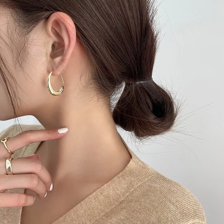 Серьги-кольца гладкие изысканные в Корейском стиле для женщин и дев...