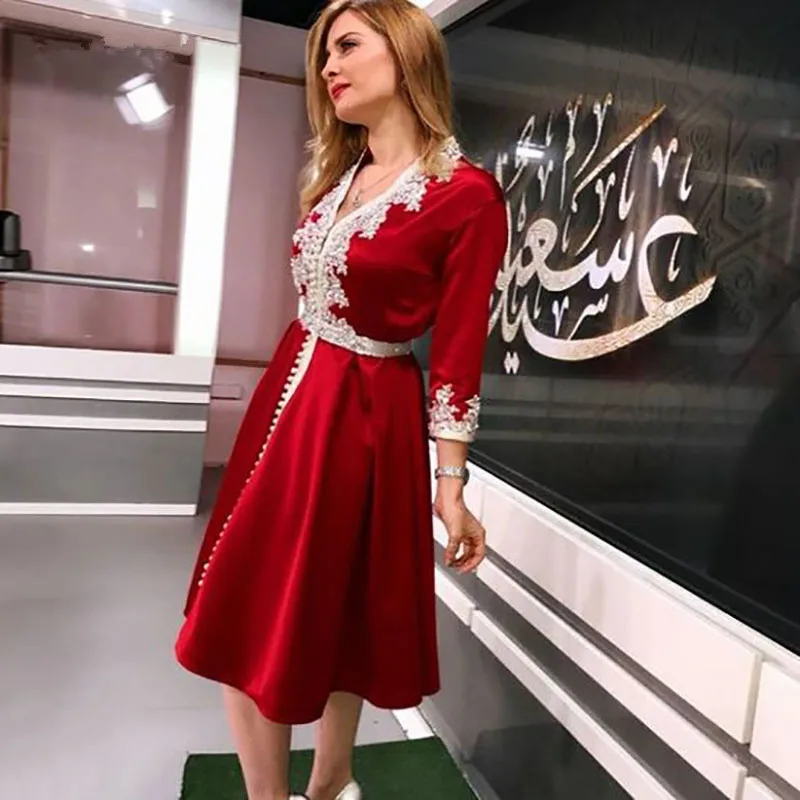 Женское кружевное вечернее платье Vinca, красное короткое марокканское платье до колен, с V-образным вырезом, для особых случаев