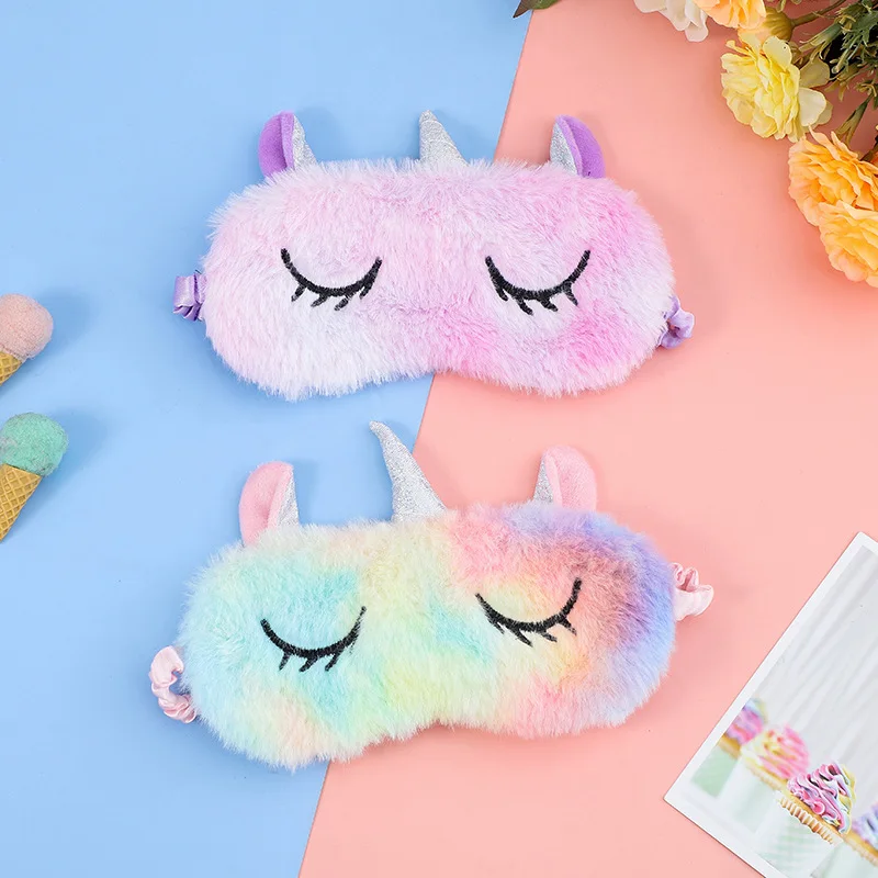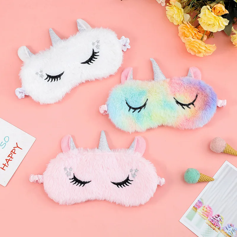 Единорог, плюшевая маска для глаз, цветной меховой браслет для сна ...