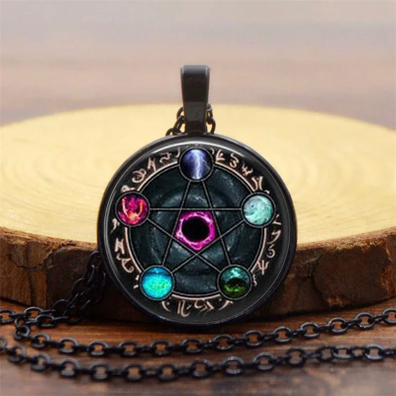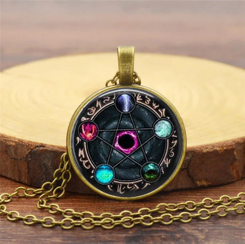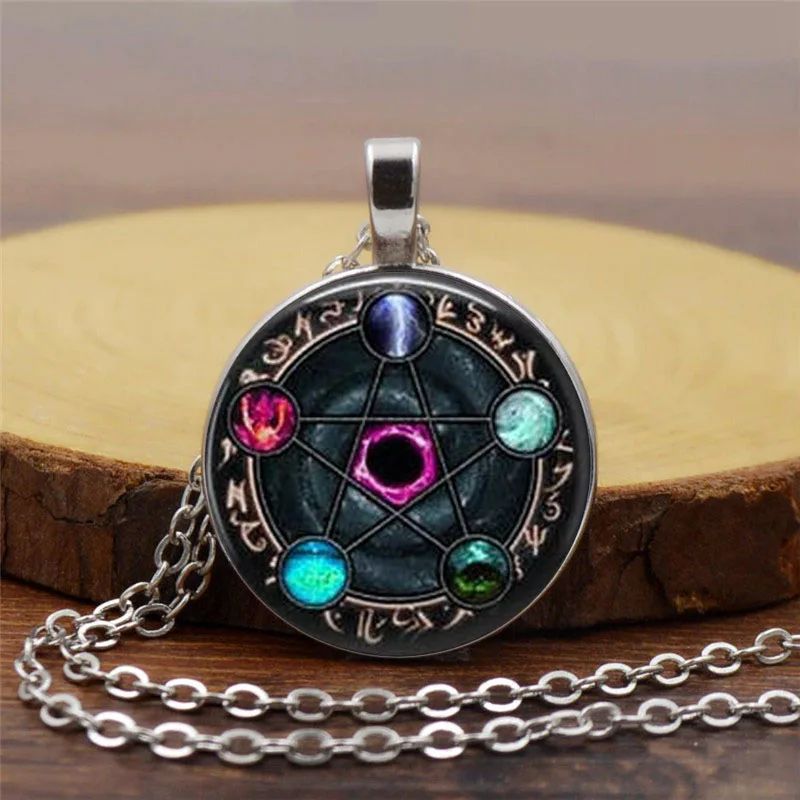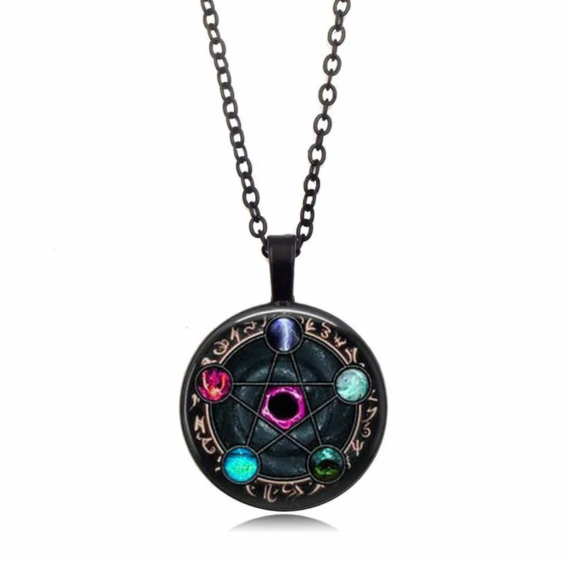 Ожерелье с подвеской сатана для мужчин и женщин, колье с металлической подвеской с разноцветными звездами, пентаграммой, волшебным кристаллом, модная винтажная бижутерия