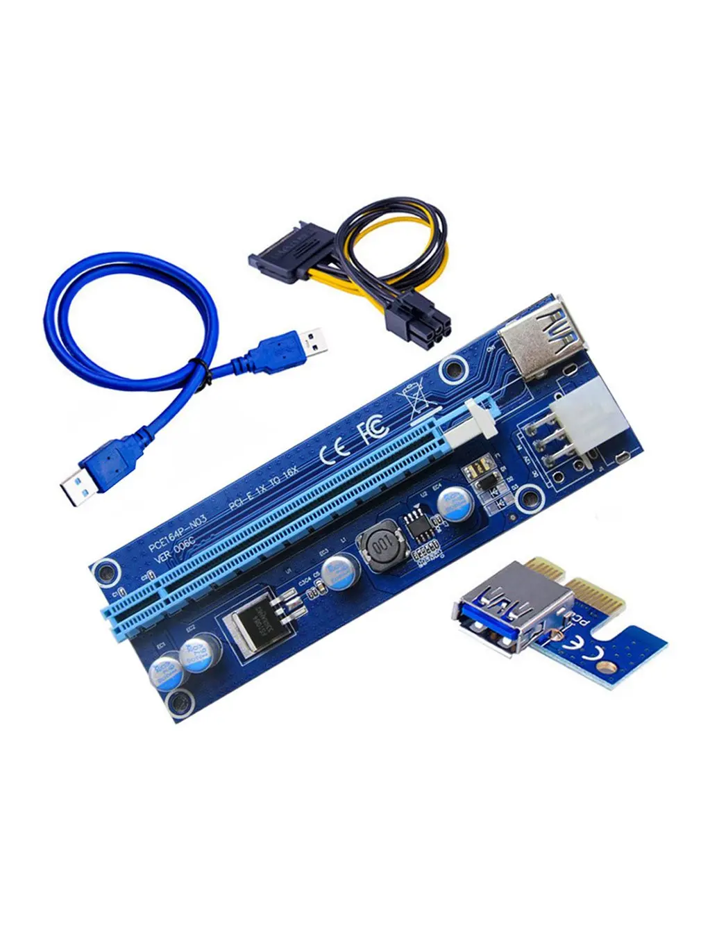 6 шт. 006C PCIe 1x до 16x Экспресс Райзер карта графический pci-e Райзер удлинитель 60 см USB 3,0 кабель SATA до 6 контактов питания для майнинга BTC