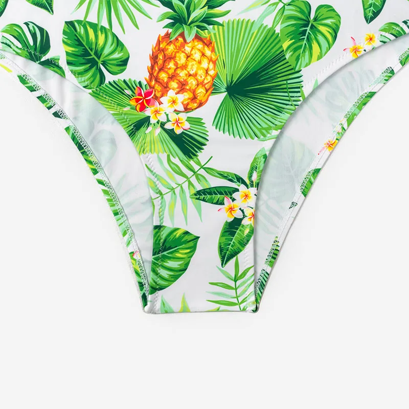 Женский раздельный купальник, бикини с принтом листьев и высокой талией, пляжная одежда, купальный костюм, 2021