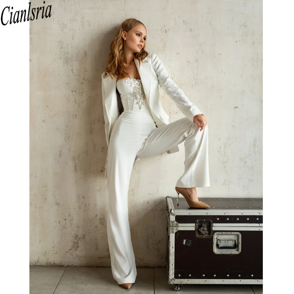 Модные Белые облегающие брючные костюмы для матери невесты, женские вечерние смокинги для официальной вечеринки, официальная рабочая одежда для свадьбы, 2 шт.