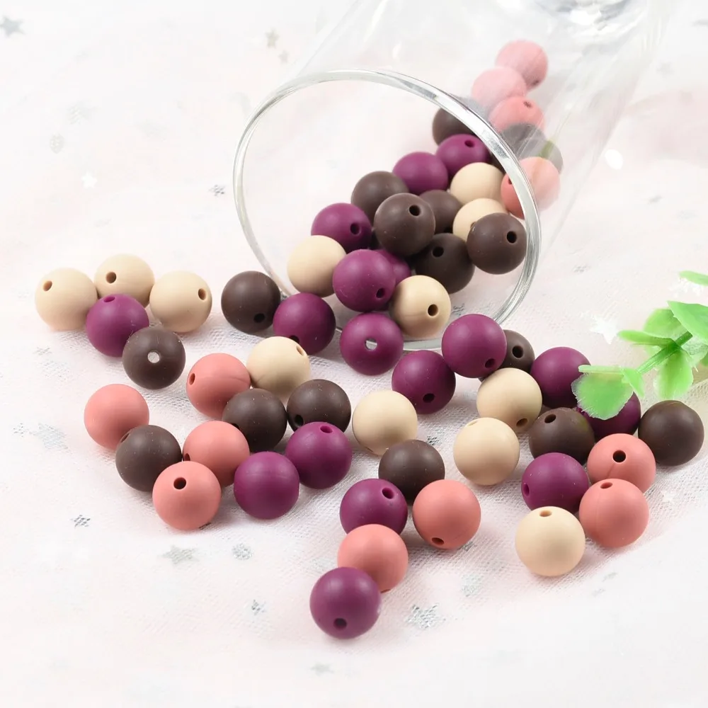 100 шт., детские круглые силиконовые бусины, 12 мм, 37 цветов