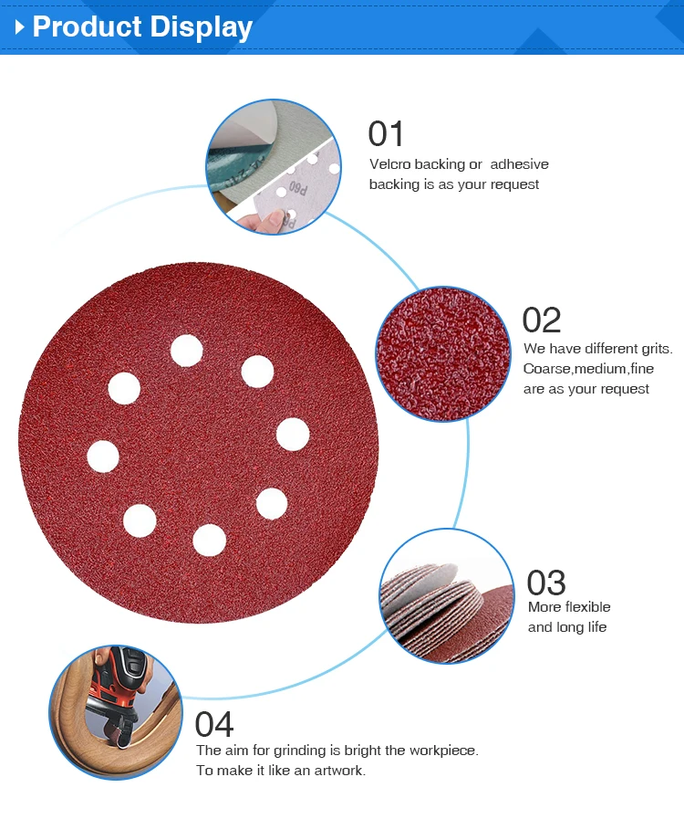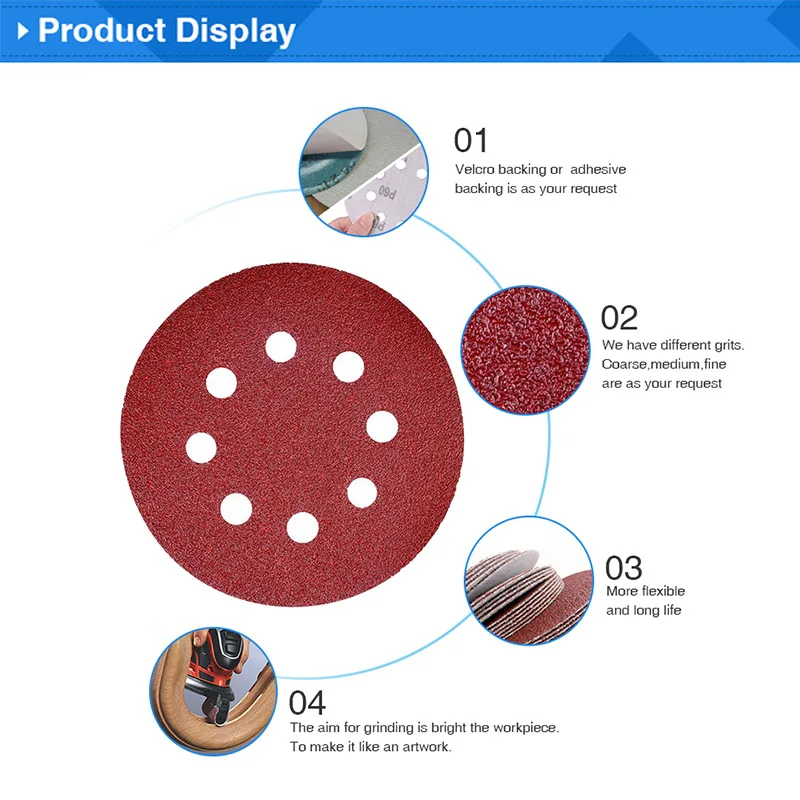 Абразивная наждачная бумага на липучке 100 мм, 5 дюймов, красный шл...