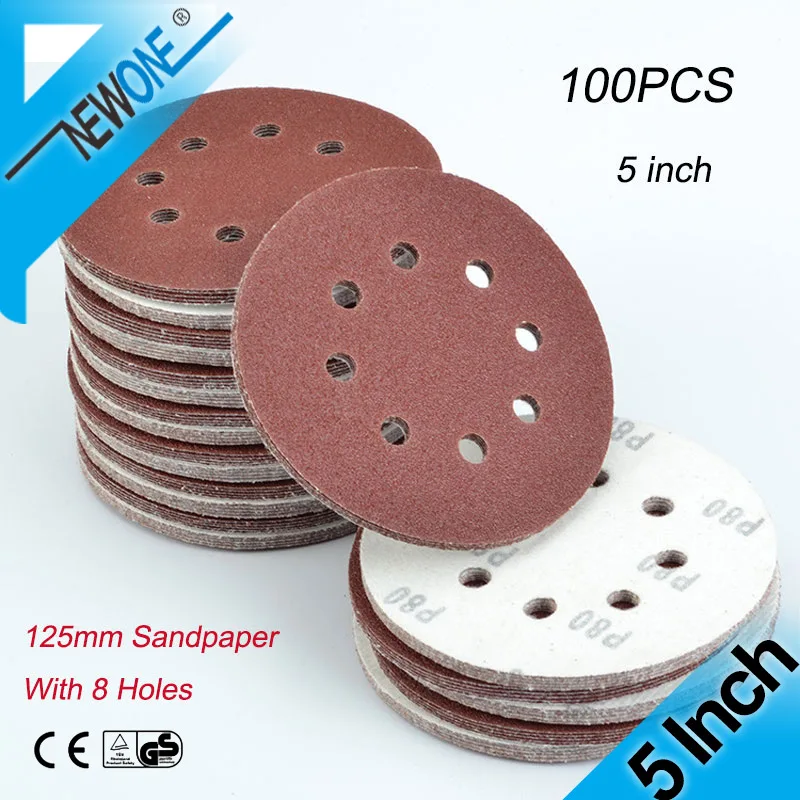 Шлифовальная бумага NEWONE, 5 дюймов, 125 мм, 8 отверстий, Зернистость 40-800