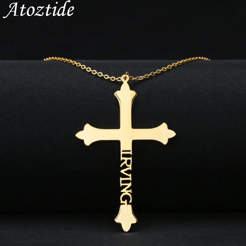 Модные подвески с крестом Иисуса, персонализированные именные буквы, ожерелья с именной табличкой, ювелирные изделия из нержавеющей стали, индивидуальный подарок для мужчин и женщин