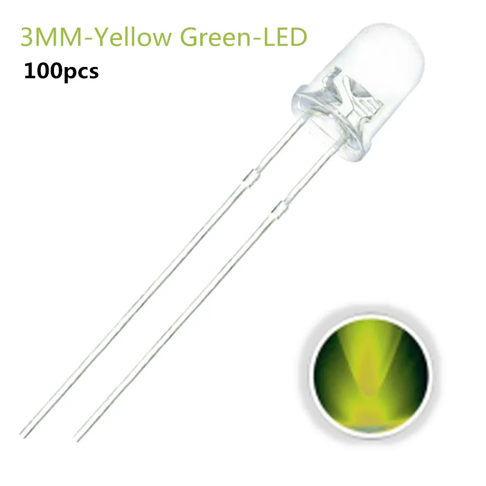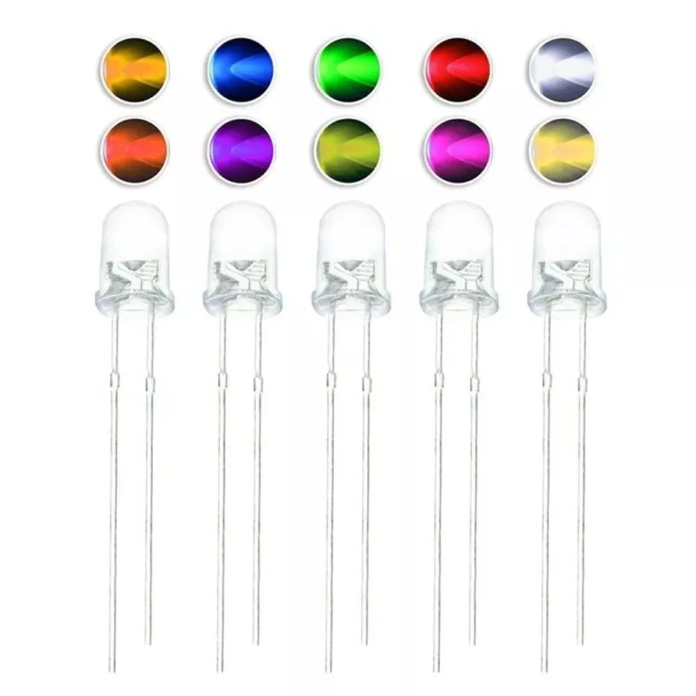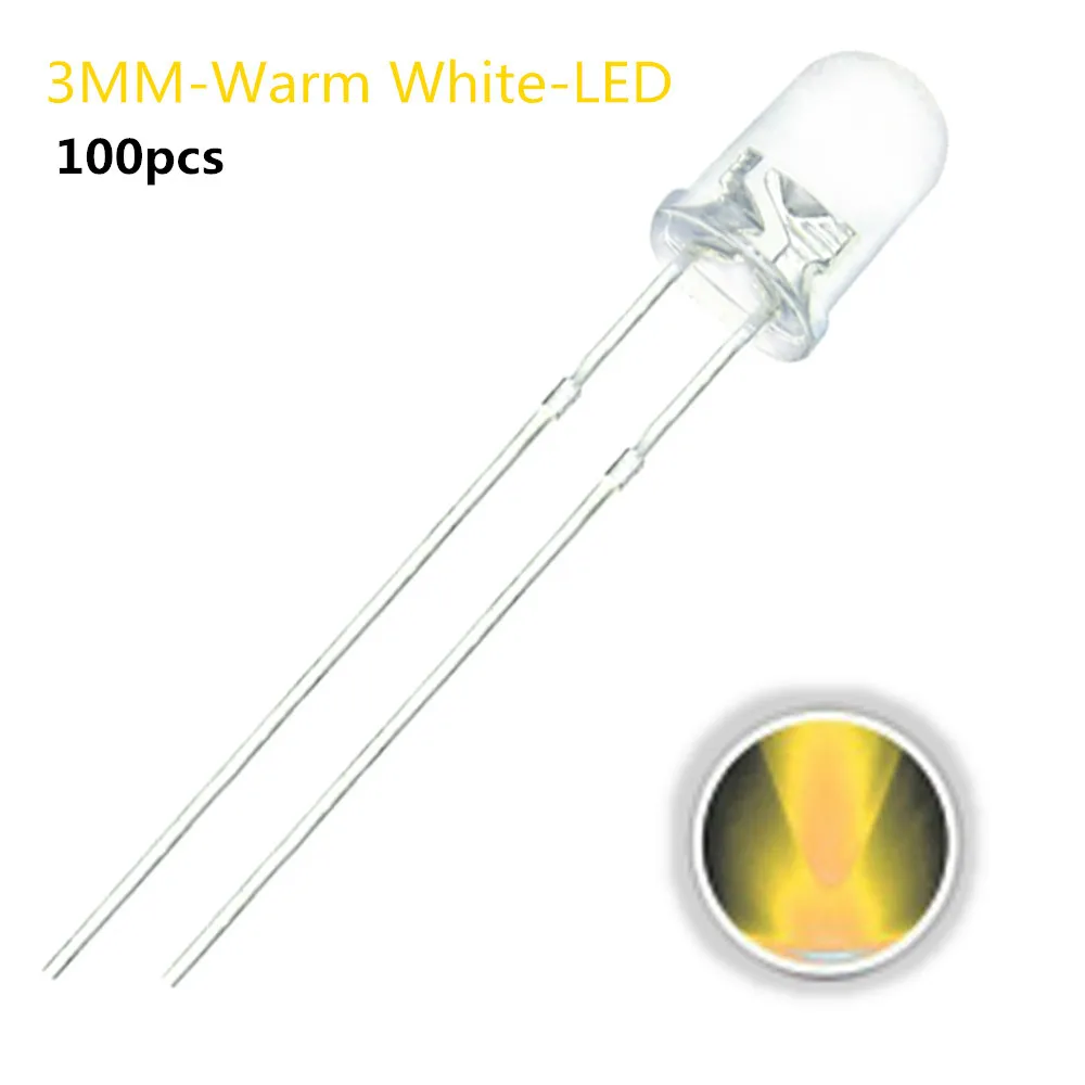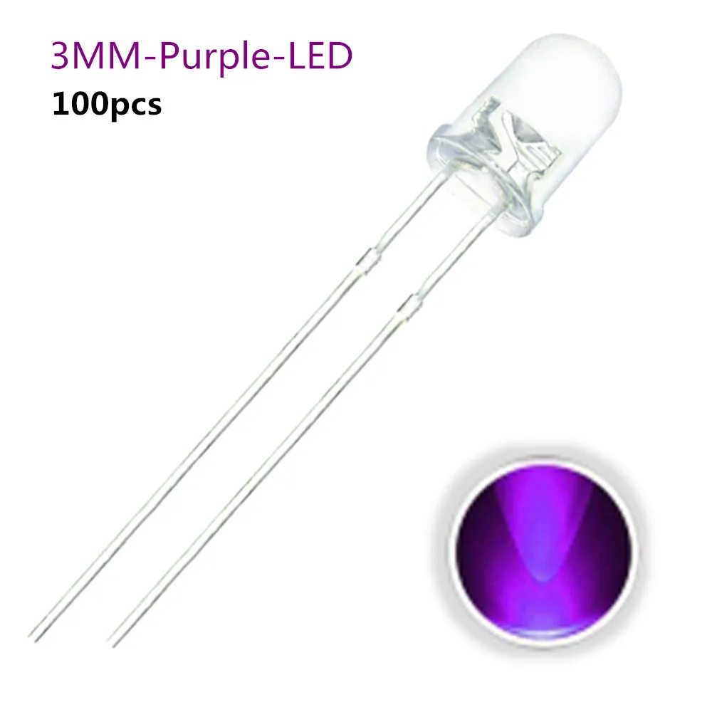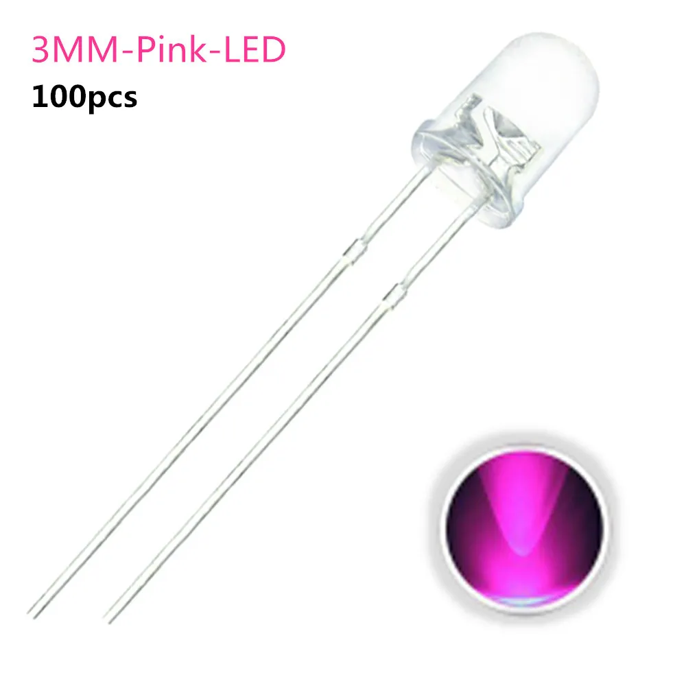 Комплект светодиодных диодов 3 мм, ассорти цветов, белый, зеленый, красный, синий, желтый, оранжевый, розовый, фиолетовый, теплый белый, сделай сам, светоизлучающие диоды, 100 шт.